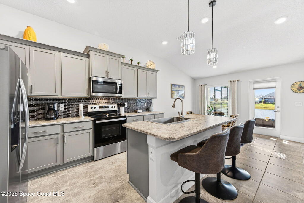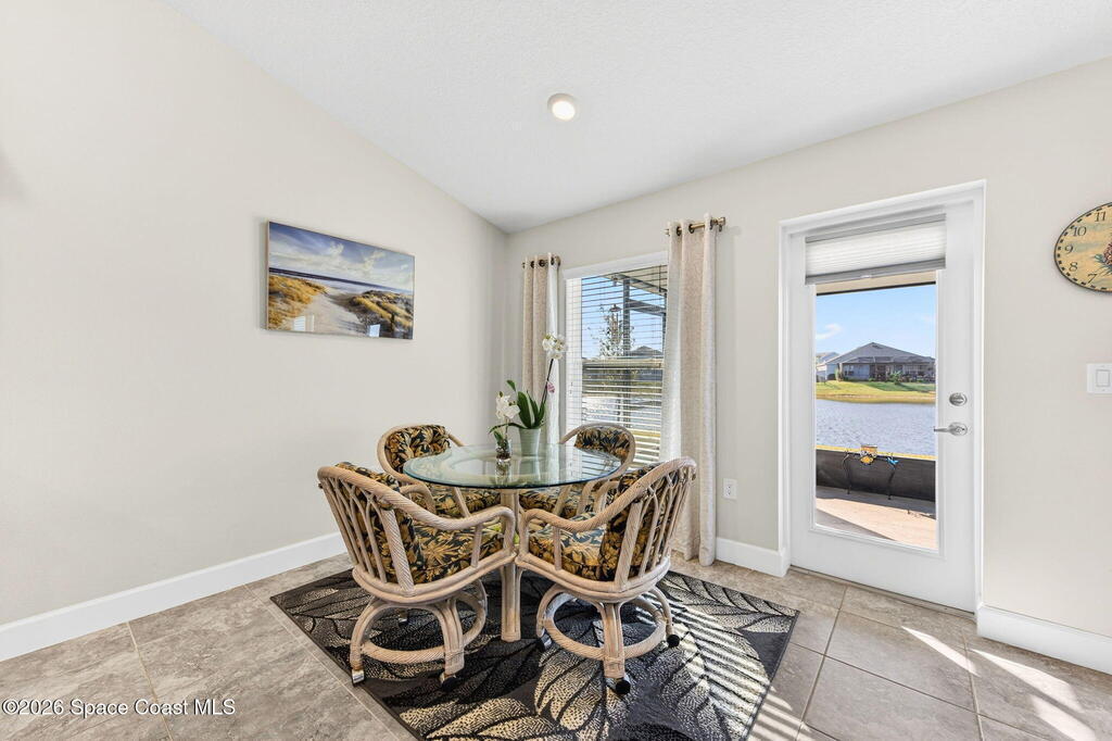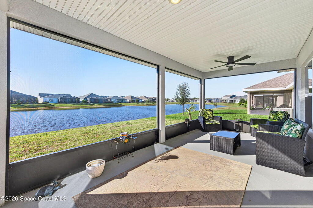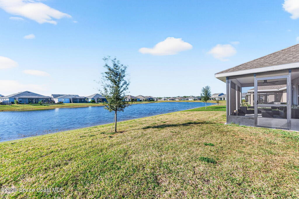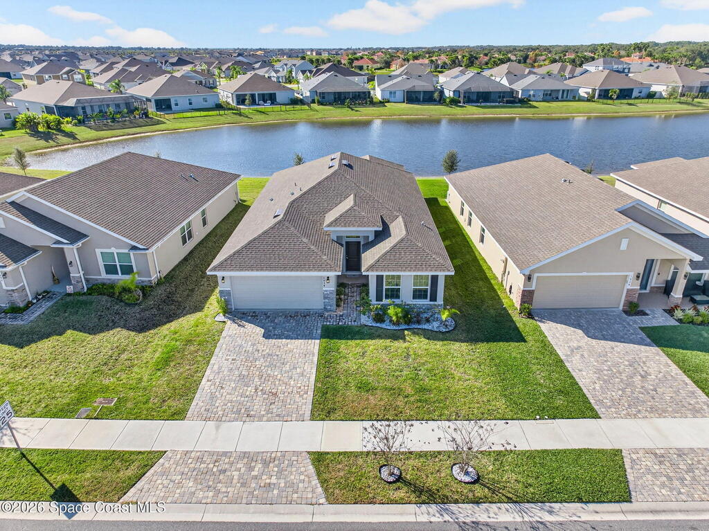 Experience modern lakefront living in the desirable gated community of The Courtyards at Waterstone. This beautifully designed 4-bedroom, 2-bath home offers a popular split-bedroom floor plan and an inviting open-concept layout ideal for both everyday living and entertaining. The home also features a stylish kitchen with stainless steel appliances, an eat-in area, and a center island overlooking the great room, plus a separate formal dining room for special gatherings. Light-filled living spaces flow seamlessly to the screened lanai with tranquil lake views, perfect for morning coffee or evening relaxation. The private primary suite also overlooks the lake and includes his-and-hers walk-in closets and a spa-like ensuite with garden tub, separate walk-in shower, and double-sink vanity. There is also a separate laundry room with Maytag washer and dryer, and a two-car garage with epoxy flooring. Also enjoy the convenience and security of a resort-style community pool.