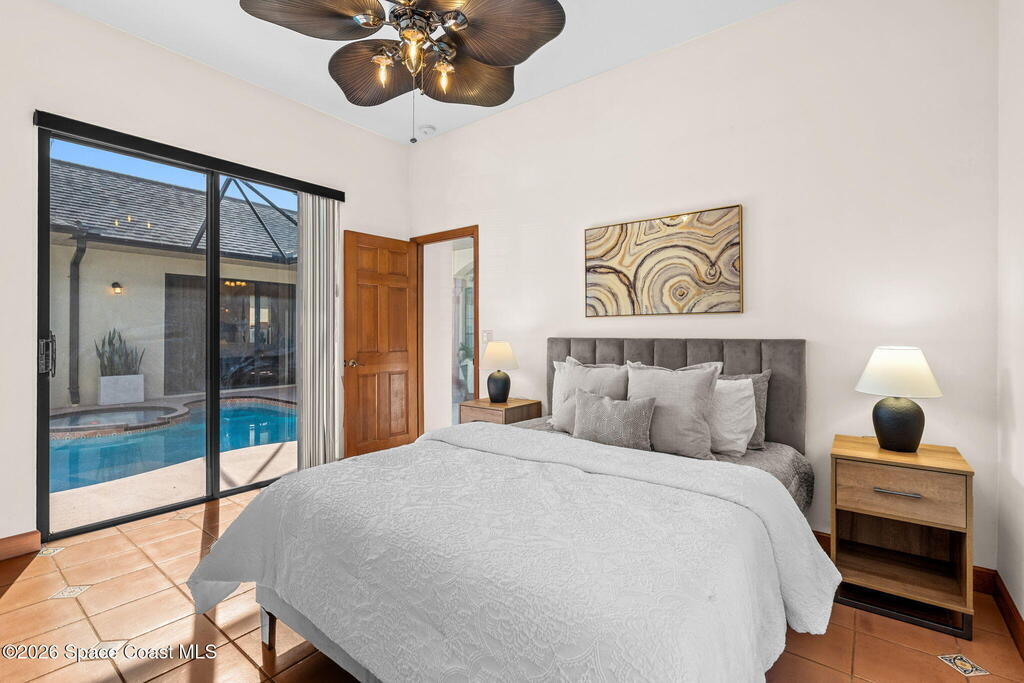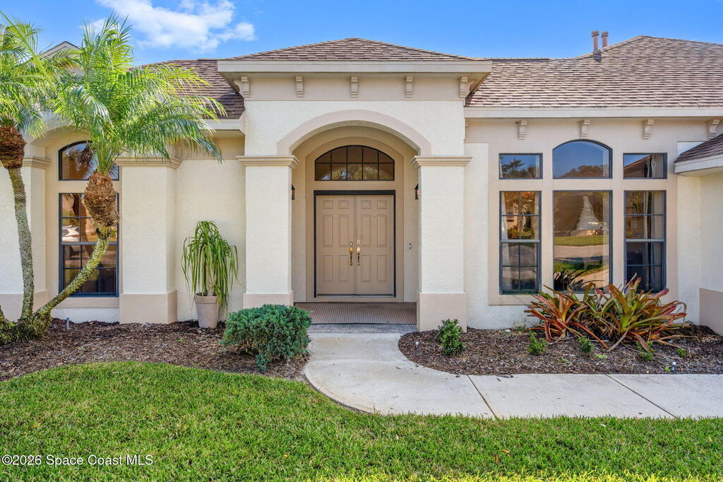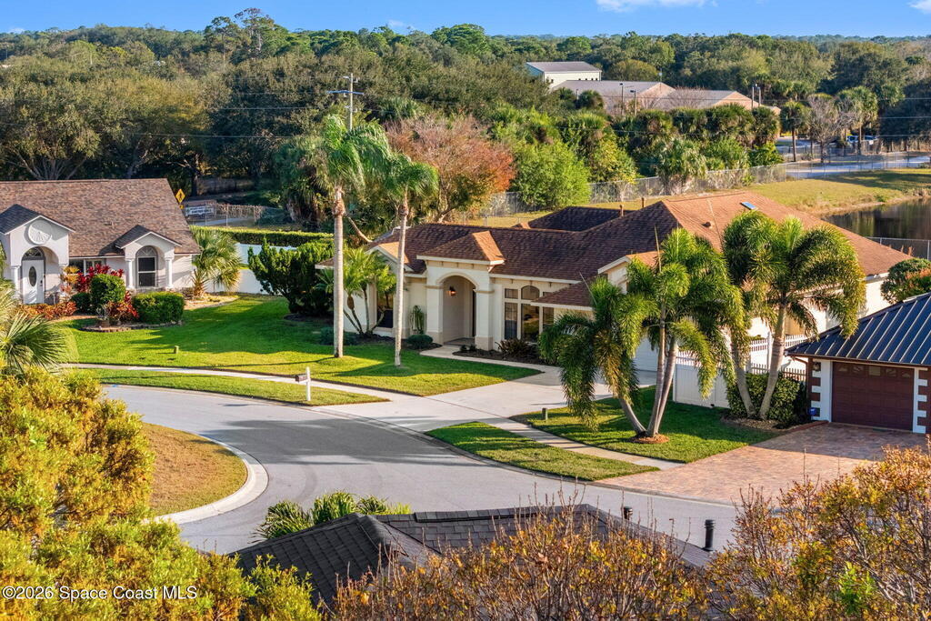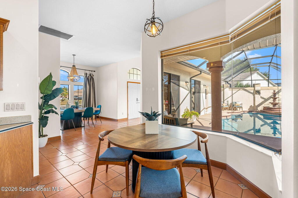 Located within the sought after Vizcaya Estates community in Suntree, this Spanish inspired concrete block residence offers a thoughtful blend of timeless character and meaningful updates. Known for its established neighborhoods, strong school systems, nearby golf, and convenient access to dining and daily amenities, Suntree continues to be one of the most desirable areas on Florida's Space Coast.The home features four true bedrooms and three full baths, with one bedroom currently configured as a home office. High ceilings and a well designed floor plan create an open, airy feel throughout, while nearly every room enjoys tranquil views of the pool and outdoor living area.Recent improvements include a 2017 shingle roof, a new AC system in 2024, and extensive pool upgrades completed in 2024, including resurfacing, new equipment, and a new heater. The pool is beautifully illuminated in the evenings, adding to the home's inviting indoor outdoor atmosphere.