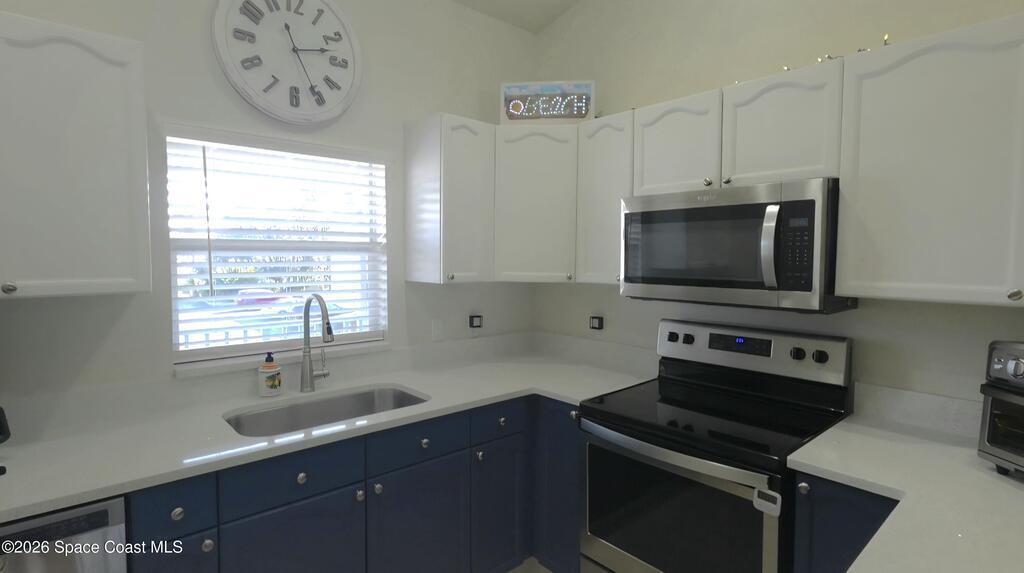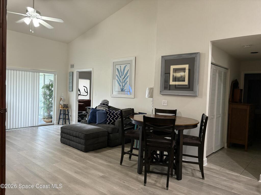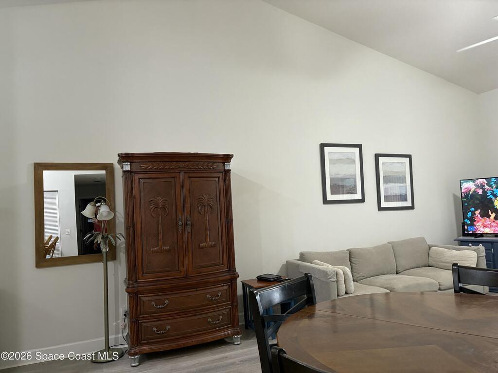 Lovely second floor condo available in Portside Villas. Light, bright and airy with high vaulted ceilings. Unit has a screened in patio with storage, overlooking a pond with tons of turtle friends to watch. Kitchen has beautiful quartz counters with a little bit of sparkle. So pretty! They are complimented by the newer 2 toned cabinets. Stainless appliances included. AC & WH are 2020 for added peace of mind. Community has a pool and hot tub and is so close to everything while being amazingly quiet. Port Canaveral is about 3 minutes down the road and there are numerous beach accesses to choose from in the area. Come see the Portside difference!!!
