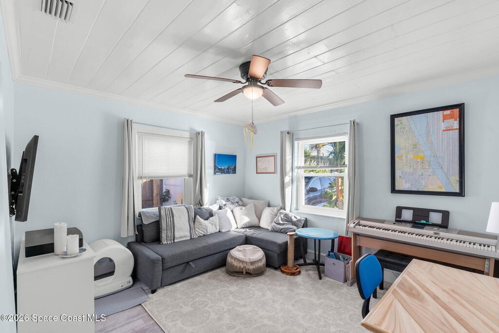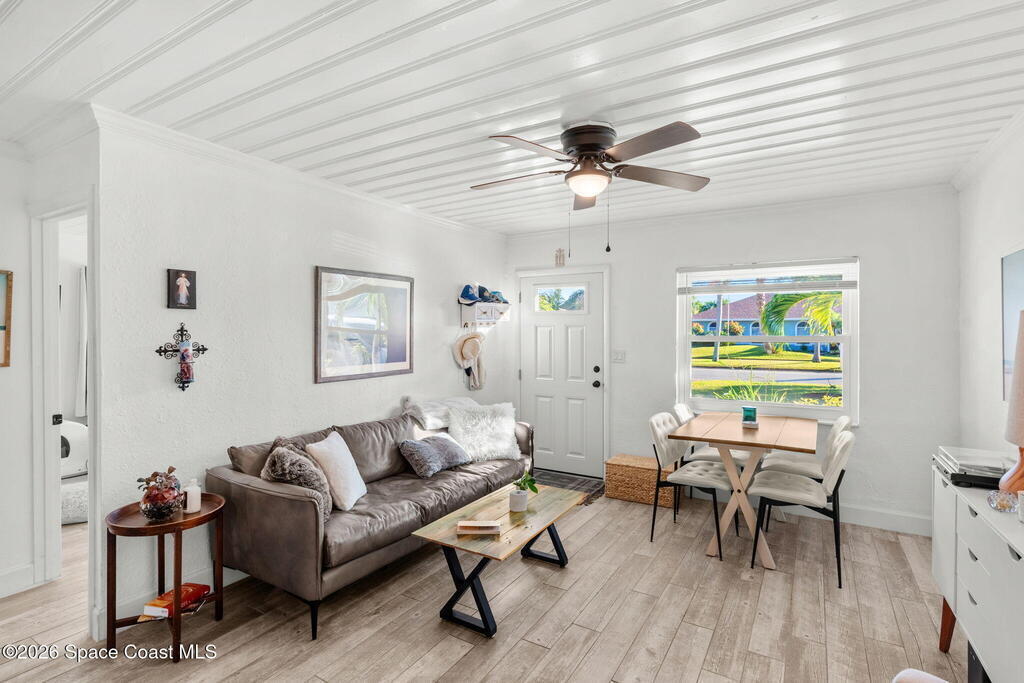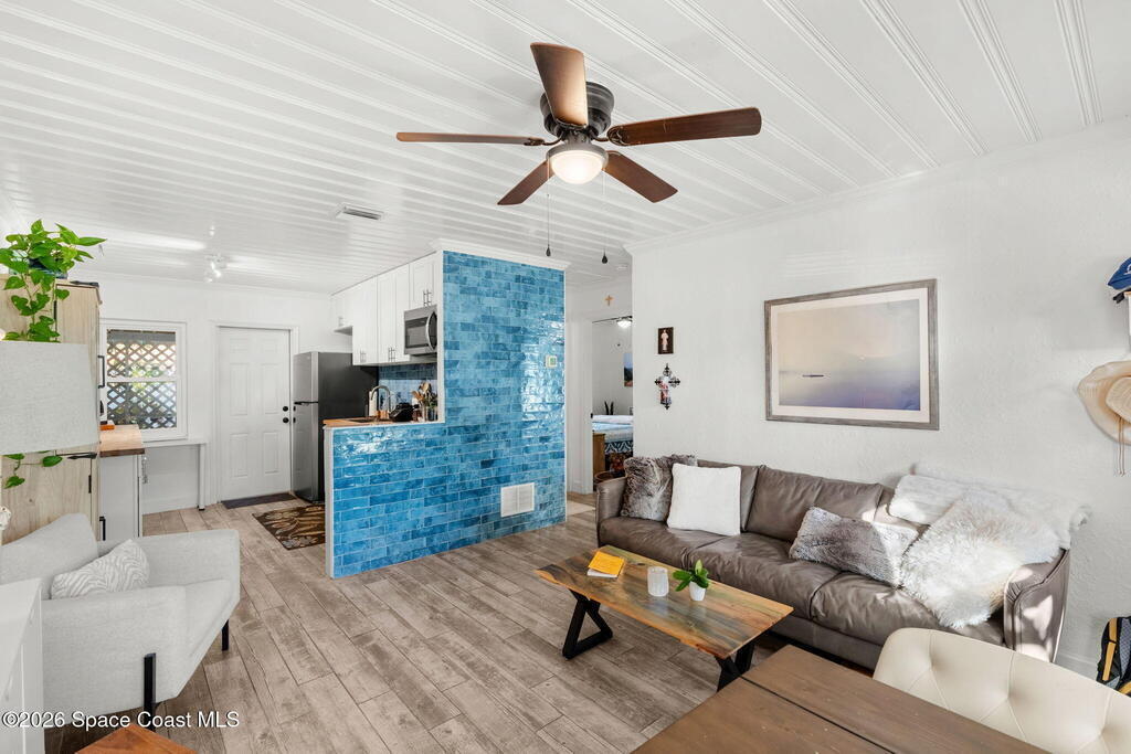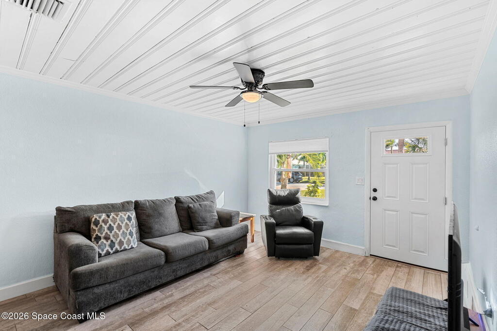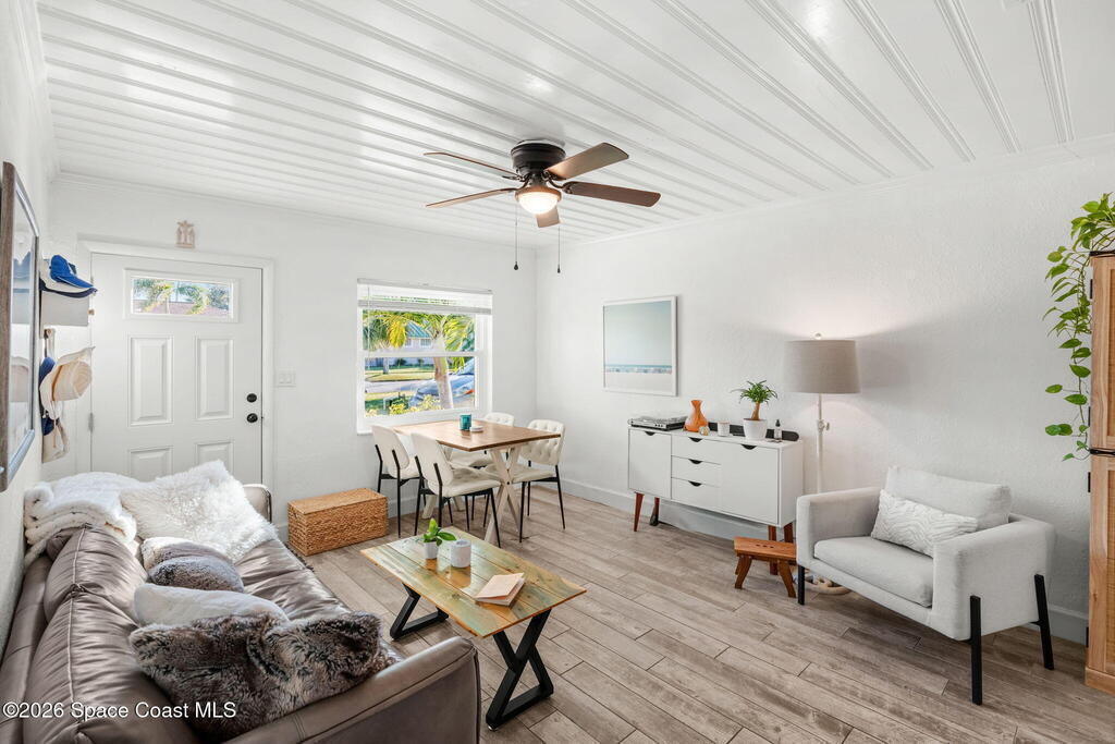 Tucked just one block from the ocean and 2 blocks from Satellite high campus, this fully renovated triplex offers a rare blend of coastal lifestyle, privacy, and versatility. Set on a lushly landscaped lot, the property feels more like a private micro-estate than a traditional multifamily, with mature native plants and fruit-bearing trees creating a peaceful, shaded retreat. The property includes 3 updated residences: two 2-bedroom/1-bath units and one 1-bedroom/1-bath unit, each with its own fully fenced yard and private outdoor space. Extensive capital renovations make this a turnkey opportunity, including new electrical, new PVC plumbing with no cast iron under the slab to the street, hurricane impact rated impact windows and doors, paver driveway, and 2022 A/C units throughout. A rear carport has been converted into three private storage units. With significant capital upgrades this is a rare beachside triplex suited for investors, owner-occupants, or multigenerational living.