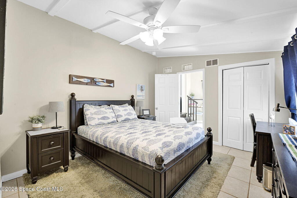 Welcome to your own private Cocoa Beach resort--perfect for large families, group getaways, or continued short-term rental use. This spacious 5-bedroom, 3-bath home offers a seamless blend of comfort, style, and vacation-ready living.The backyard delivers true resort vibes with a sparkling pool, relaxing jacuzzi, tiki hut with bar, outdoor shower plus two additional rinse stations, and expansive seating including loungers and shaded dining tables. The fully fenced yard is accented with ambient lighting, creating the ideal setting for both daytime fun and evening gatherings.Inside, the freshly updated interior features fresh paint throughout and a bright open-concept layout. The large kitchen is designed for entertaining with granite countertops, a center island, and multiple dining areas for hosting family and friends. Flexible sleeping arrangements include guest rooms with bunk beds and double beds, comfortably accommodating larger groups. Additional highlights include in-home