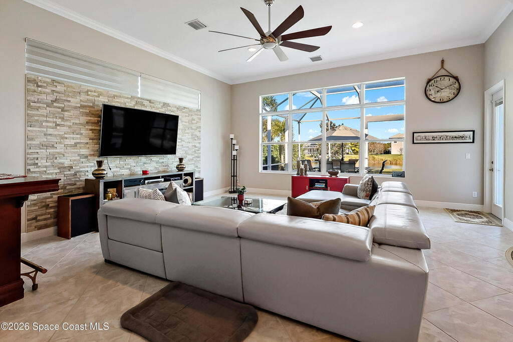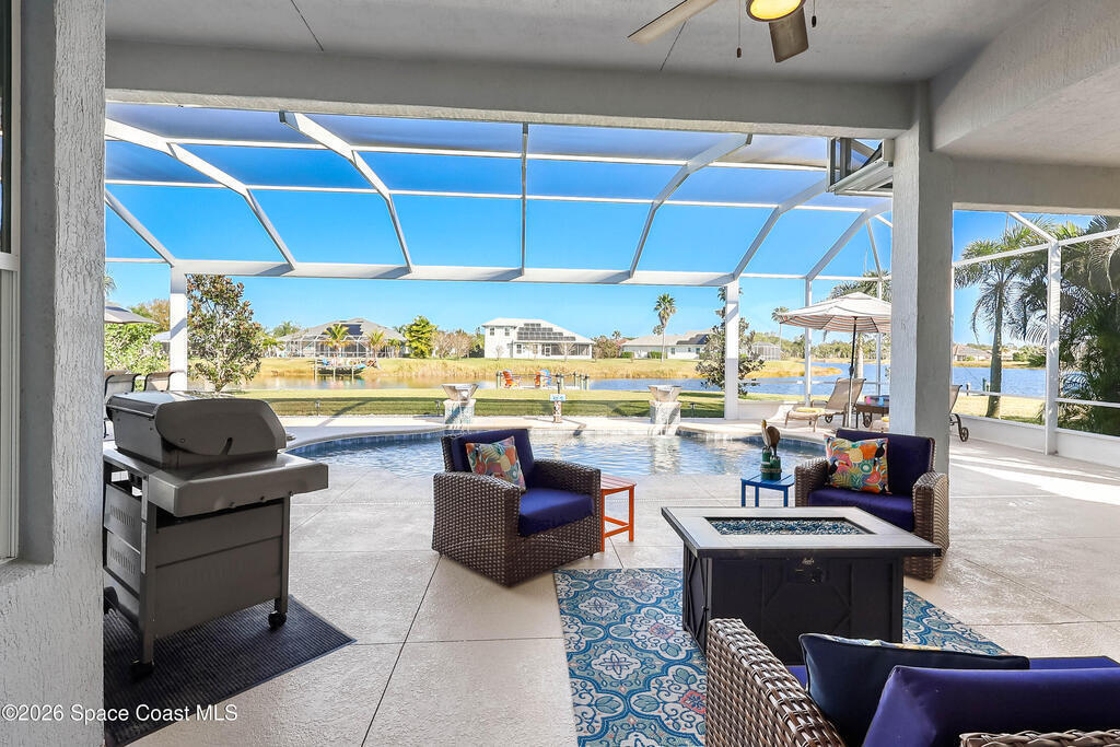 Luxury 2019 Lake home in Sebastian. 4/3/2 GHO Home. Exquisite Primary MBR overlooking the lake w/an en-suite BTH that has been thoughtfully integrated elevating the suite into a true sanctuary. Impact windows, Upgraded cabinetry in this beautiful kitchen overlooking a Great Room with lots of windows offering a generous living space filled with natural light and seamless indoor-outdoor flow. Luxury countertops, upgraded diamond pattern tile layout throughout main areas. No carpets. Impact windows, Flat Tile roof, House Generator w/500 Gal. Gas Tank. Premium pool finishes like 'Wet Edge Technology' made w/natural stone for a durable, long-lasting surface and Magic Bowl Water Effects to create a magical back yard for all to enjoy!