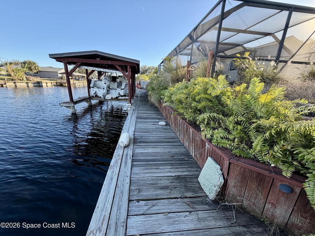 Investor Special! Rare opportunity to own a 3-level waterfront home with 95 feet of navigable canal frontage in desirable Merritt Island. This 3 bedroom, 2.5 bath property features a screened pool, enclosed porch, large dock, with boat slip and sits on a quiet cul-de-sac. The age of the main systems are, two HVAC systems (6/2021 & 1/2022), roof (11/2016), and water heater (6/2017). Boaters will love the direct water access, while the location offers quick proximity to Cocoa Beach, Port Canaveral, Kennedy Space Center, Orlando International Airport, and Disney. Ready for renovation, investment, or transformation into your dream waterfront retreat.