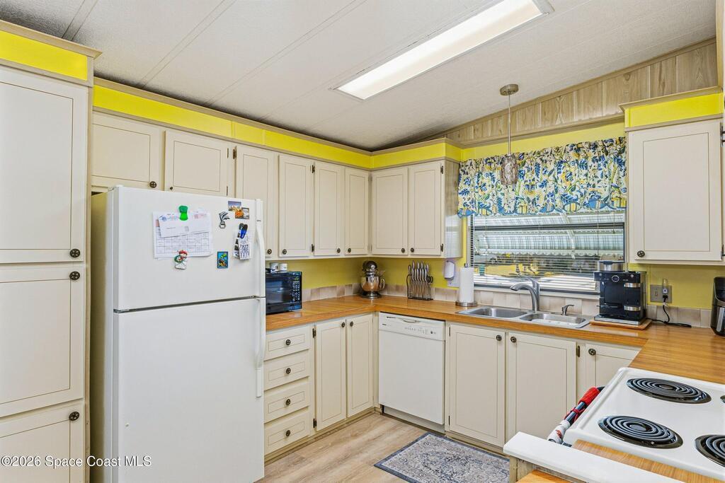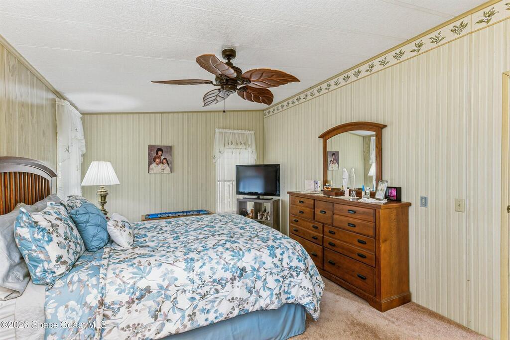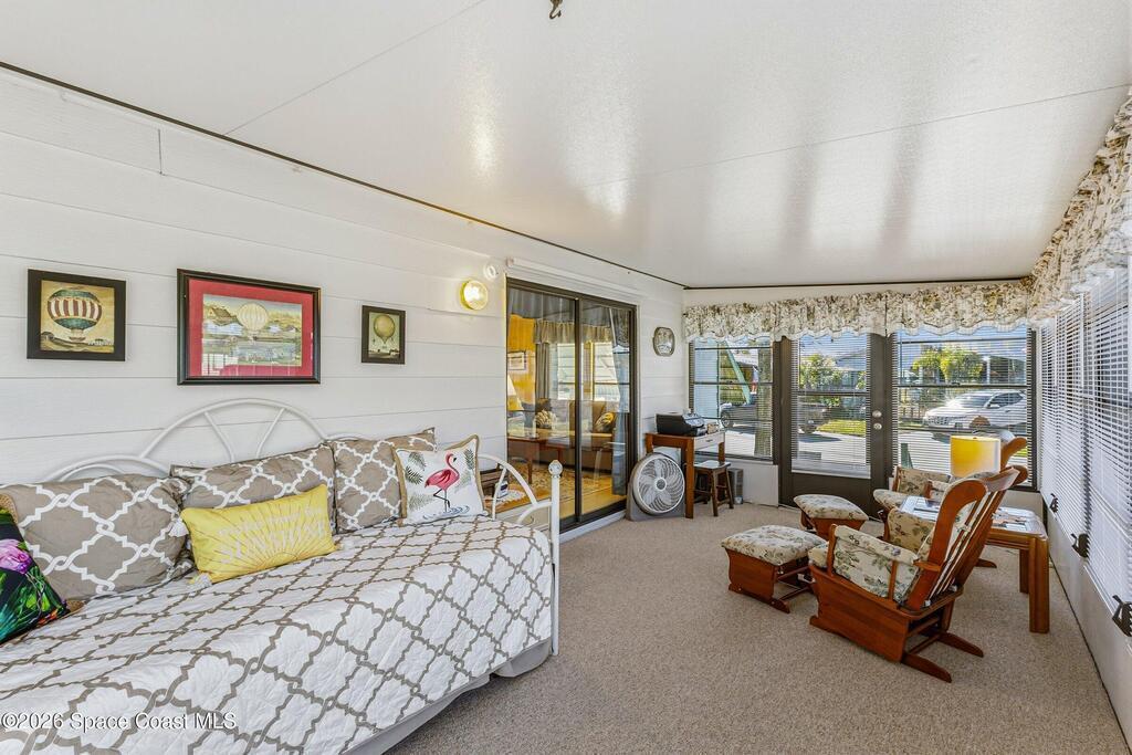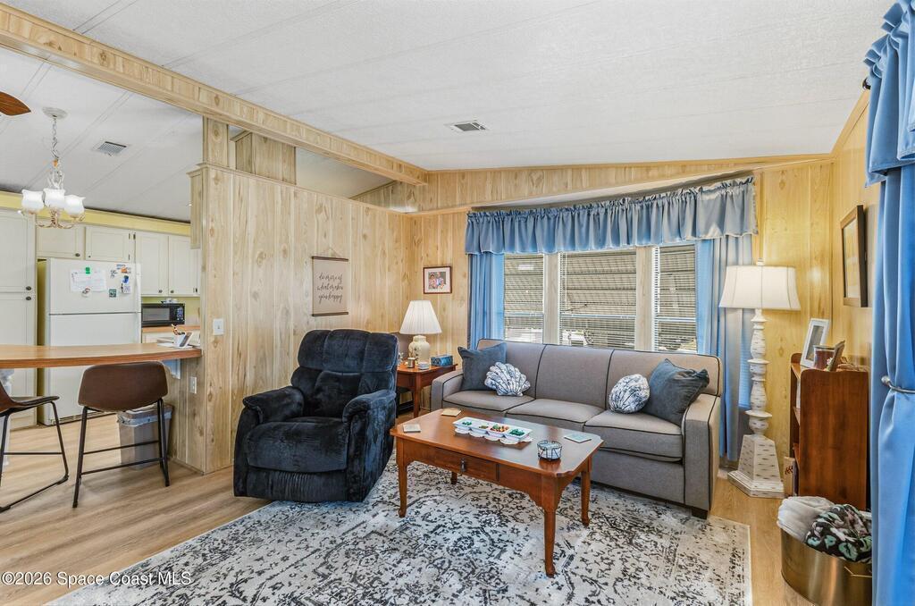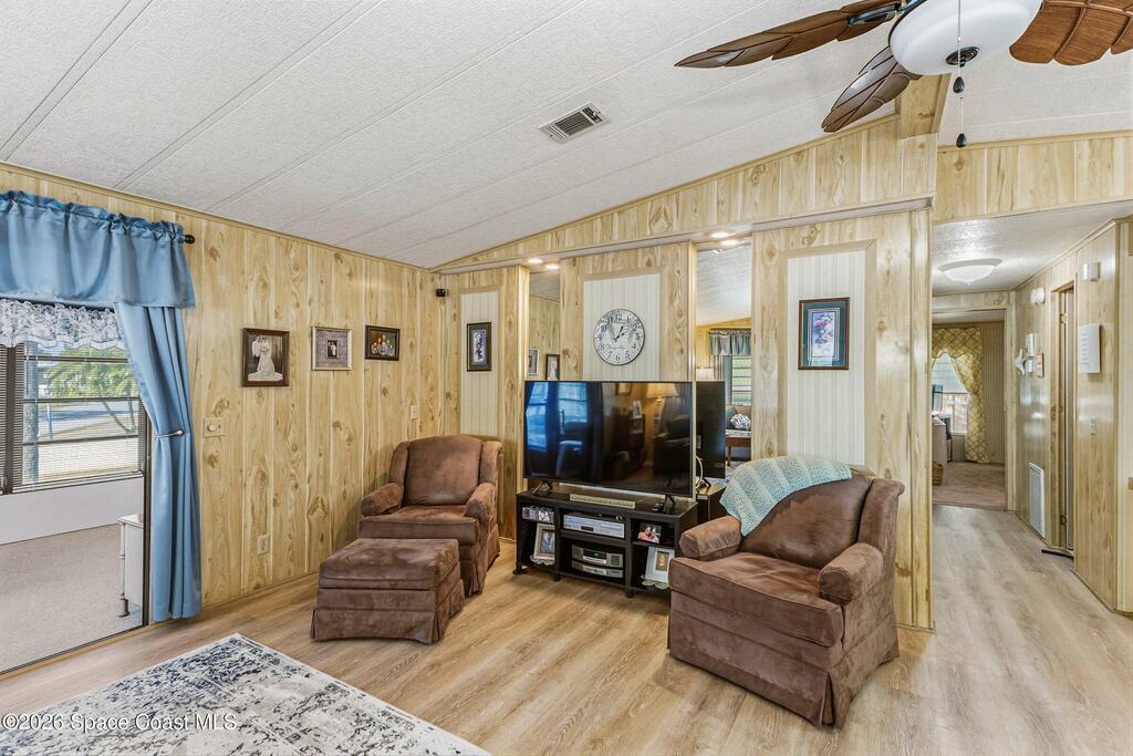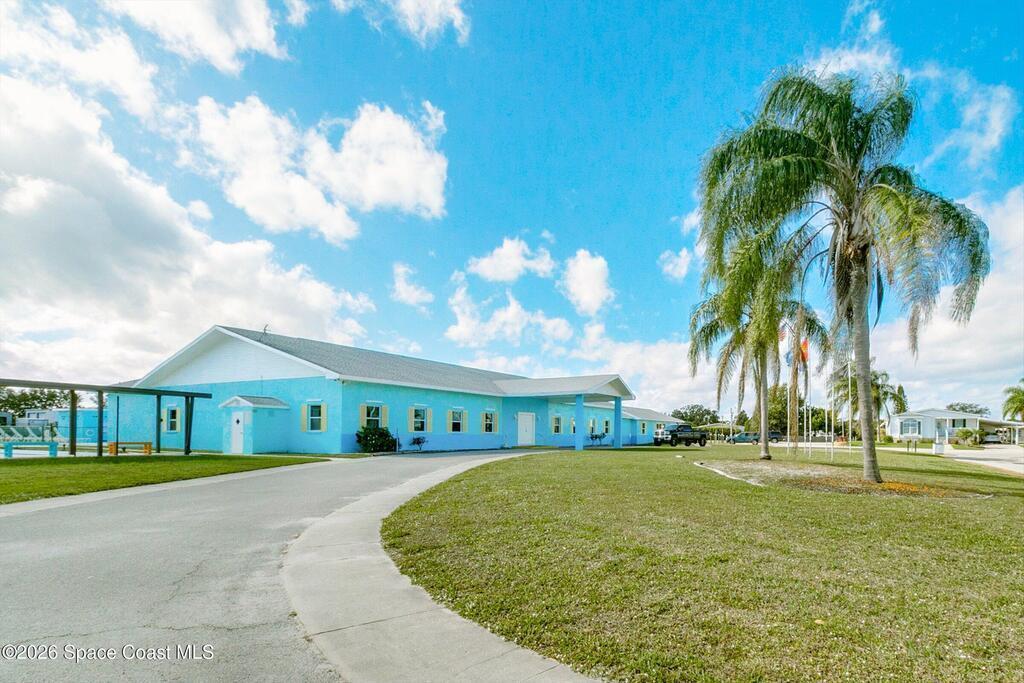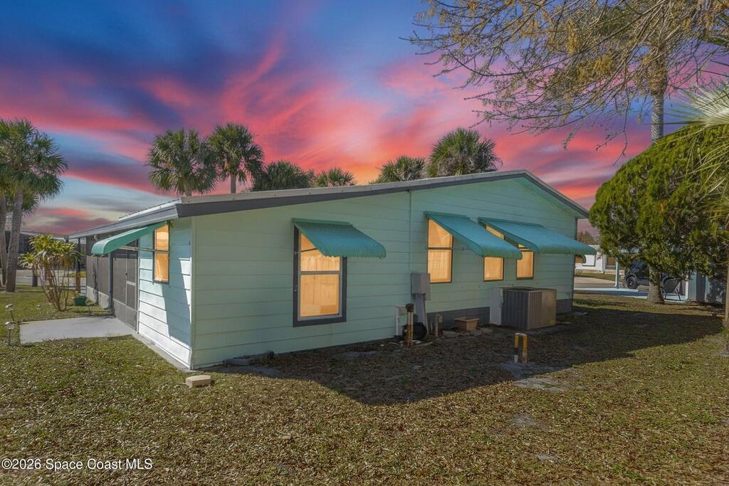 Beautifully maintained 2/2 manufactured home nestled amongst the palm trees in the wonderful West Melbourne 55+ community of Hollywood Estates. This is one of the few communities where you OWN YOUR LAND!There is great flow to this home. Kitchen opens to the dining area equipped with built ins. Space moves right into the main living space -that's great for entertaining and then through sliding glass doors into the enclosed florida room lined with windows which allows a lot of light to flood the home.Large Master bedroom with huge closet.Both baths have been tastefully remodeled with nice size walk in showers.Enjoy your morning coffee on your big screened patio large enough for multiple seating areas. And for added use, screen enclosure equipped with double doors if you would like to pull in the car. Utility room off carport houses the washer/dryer along with plenty of storage space. 2024 metal roof/2020 AC/2015 WH. Home has full concrete skirt. Clubhouse-Pool-Shuffleboard.