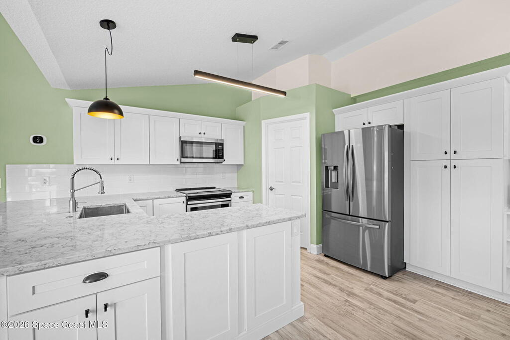 Breakfast Bar, Breakfast Nook, Built-in Features, Ceiling Fan(s), Pantry, Primary Bathroom - Shower No Tub, Primary Downstairs, Split Bedrooms, Vaulted Ceiling(s), Walk-In Closet(s)
