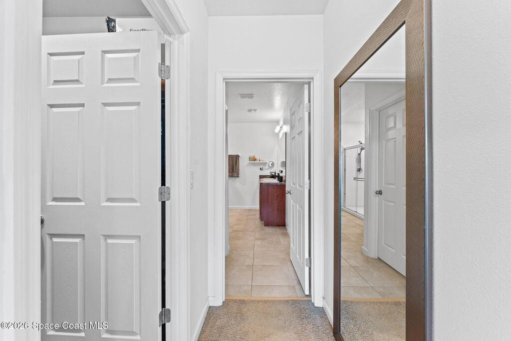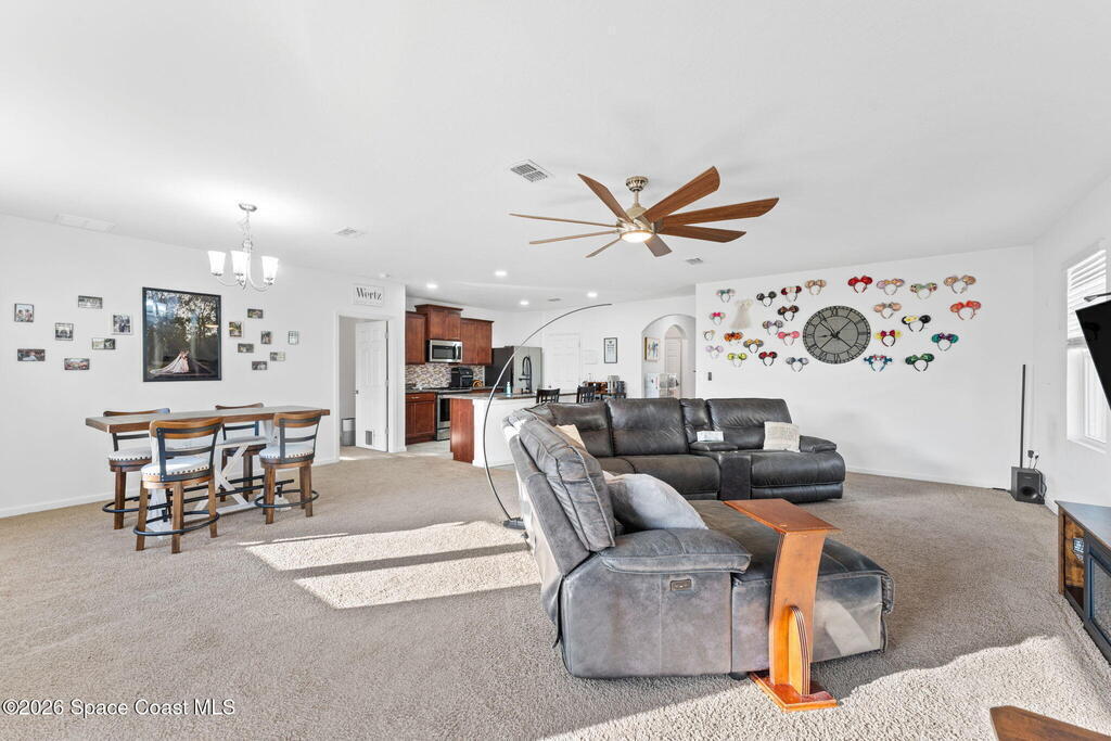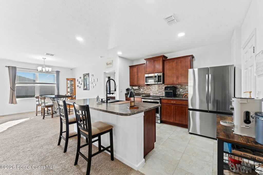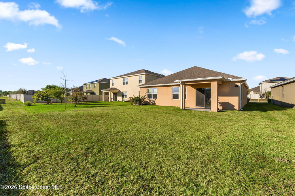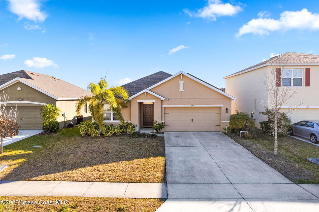 Step into smart, easy Florida living - done right. This well-designed 3-bedroom, 2-bath home delivers an open, airy floor plan that flows effortlessly from the kitchen island to the main living space, making everyday life and entertaining feel seamless. Tile and carpet are thoughtfully placed for both comfort and durability, while walk-in closets keep everything organized and out of sight. Security and convenience come standard with a gated entry, manual storm shutters, security cameras, and a smart thermostat that keeps you comfortable year-round. Slide out back to a covered porch that's perfect for morning coffee or winding down after a long day. The 2-car garage rounds out the package with plenty of space for storage and toys. Perfectly positioned near I-95 and 192, you're minutes from shopping, dining, and entertainment - without sacrificing peace and privacy. This isn't just a house, it's a move that makes sense!