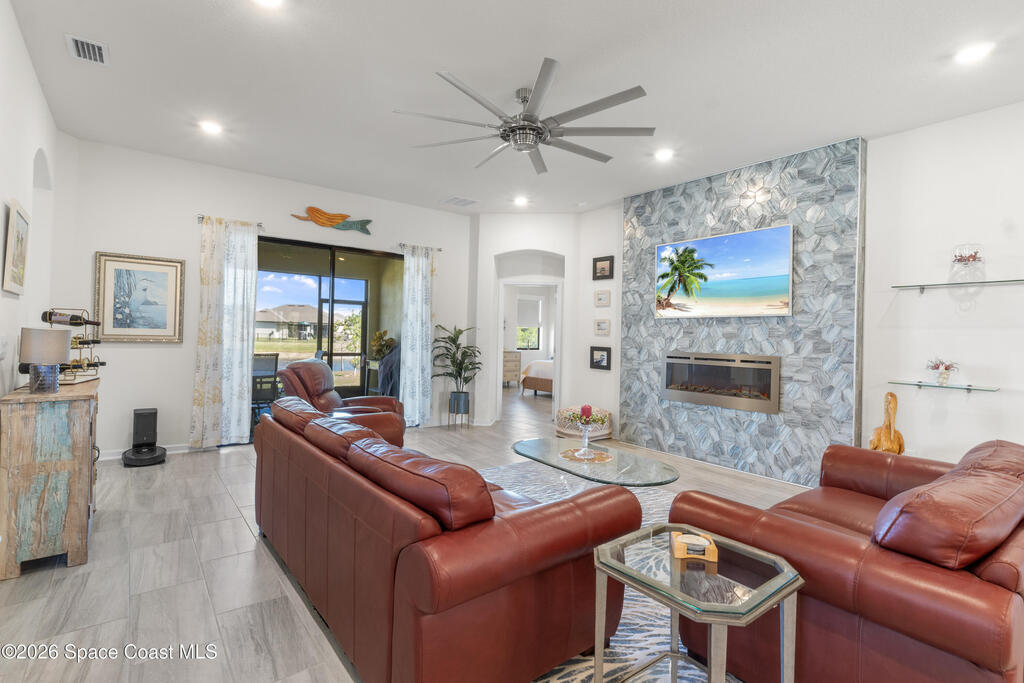 Built in 2022 and meticulously maintained, this home invites you to slow down and enjoy the view. Thoughtful upgrades include leathered granite kitchen countertops, a striking tiled fireplace wall, and shiplap accents in the primary suite. Step onto the back patio and take in peaceful lake views--perfect for morning coffee or sunset unwinding. An assumable loan at 2.6% adds a rare opportunity for qualified buyers.