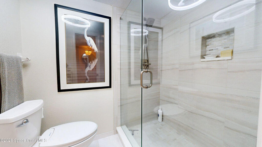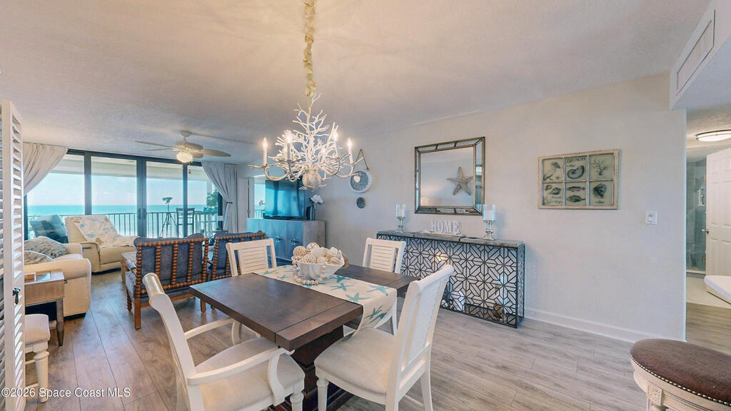 OCEANTFRONT AND RIVER ACCESS! This view says it all! Live your dream in this pristine unit in desirable Waters Edge oceanfront condo on Crescent Beach. Enjoy the ultimate in beachside living with breathtaking sunsets on the river, sunrises on the ocean, rocket launches, and sweeping views up and down the coast. Appointed with quality finishes to include a kitchen with custom maple cabinets, quartz, and wood tray ceiling, luxurious master suite with custom cabinets, quartz, makeup vanity and walk-in closet. Spacious dining/living area with large sliders for spectacular ocean views. Plus plantation shutters, vinyl plank flooring, Carrier A/C 2022, tankless water heater, newer electric panel, entire unit freshly painted, new home surge protector, electric storm shutters, and water filtration system. HOA includes two pets with no size restriction, heated pool and spa, community room, gated dock with deeded slips and Kayak launch. A must see with many high end upgrades since 2023.