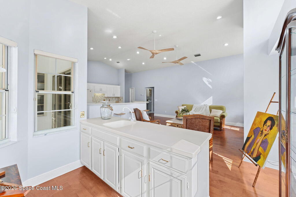 WATERFRONT- PRIVATE POOL and SPA Located in the highly sought-after Fairways at Suntree, this updated 4-bedroom, 3-bath, 2-car garage home, near golfing, offers peaceful lake views.The home features a spacious, open layout with a large living room, chimney, bar area, breakfast nook, a formal dining area, plus a separate family/living room ideal for entertaining. Recent updates include new flooring, renovated bathrooms, and newer appliances (not all shown in photos). The primary bedroom and all main living areas enjoy serene water views. Step outside to a private pool overlooking the lake, perfect for relaxing or hosting.This property is in a prime location near Suntree Country Club, numerous golf courses, the Brevard Zoo, The Avenue Viera for shopping and dining, easy access to beaches, the Kennedy Space Center, Melbourne and Orlando International Airports, Vero Beach, Disney World, and other world class attractions.