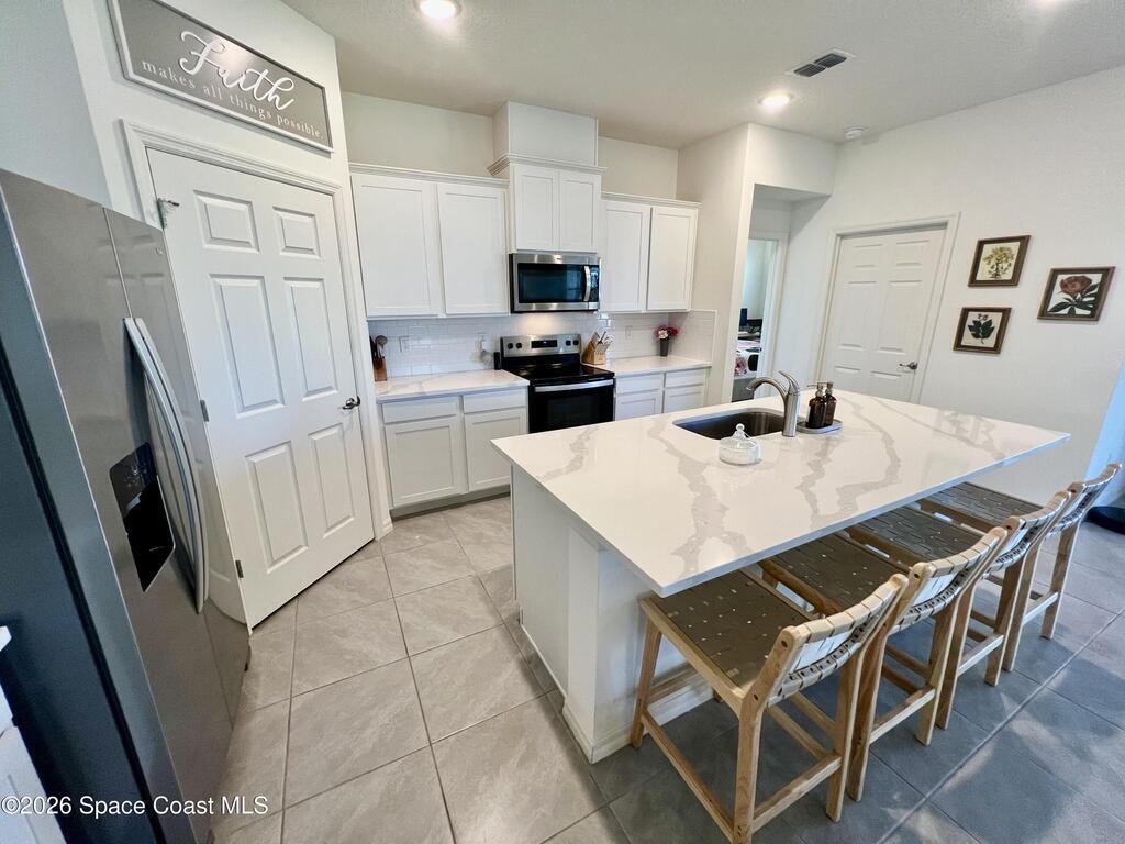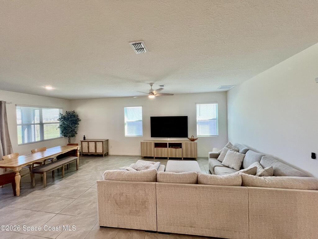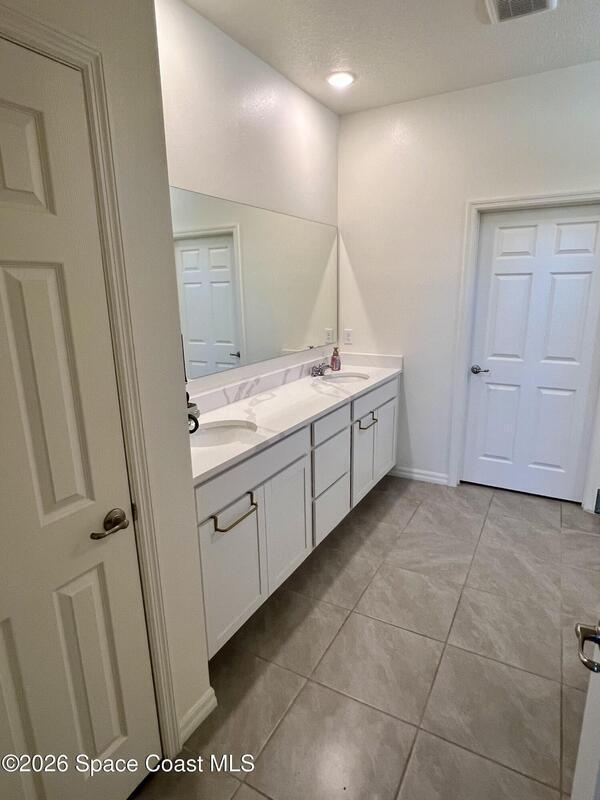 Stunning 3-bedroom, 2-bath home built in 2024. This like-new residence features an open floor plan with a spacious kitchen showcasing quartz countertops, stainless steel appliances, and a large pantry--perfect for everyday living and entertaining. The expansive family room and dining areas flow seamlessly, complemented by tile flooring throughout for a modern, low-maintenance lifestyle.Additional highlights include double-pane windows for energy efficiency, an indoor laundry room with washer and dryer included, a 2-car garage, and a screened lanai ideal for relaxing. Located in a gated community just minutes from I-95 and the new Publix, residents enjoy access to resort-style amenities including a community pool, clubhouse, playground, and basketball courts. Lawn care is included with rent, and the home can be offered furnished for added convenience. A fantastic opportunity to enjoy comfort, style, and location in one beautiful home.