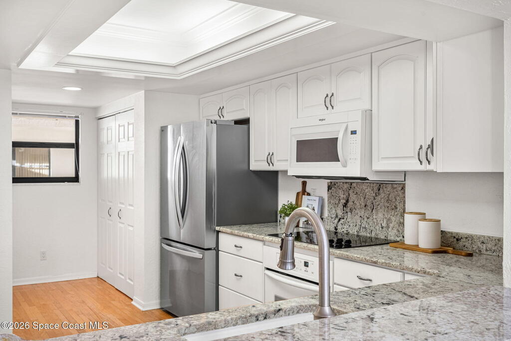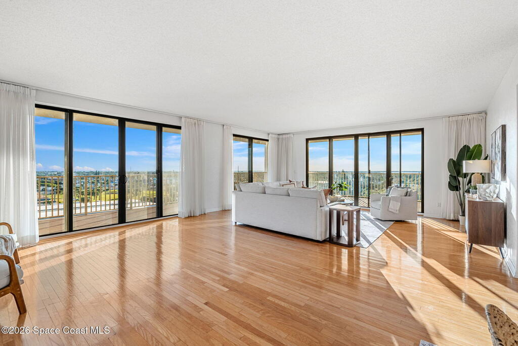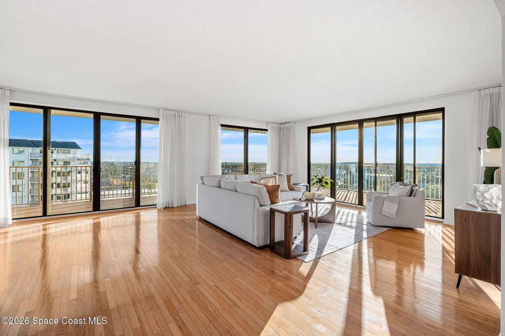 Discover the luxury of this 7th-floor corner oceanfront condo in the heart of Cocoa Beach. The seamless open floor plan features prefinished oak wood flooring and abundant natural light throughout. Enjoy a generous wraparound balcony offering panoramic views of the ocean and beach at sunrise, as well as the river at sunset.The condo includes a large eat-in kitchen with a new stainless-steel refrigerator, three bedrooms, and two full baths. Significant updates include impact windows and sliders with hurricane shutters, along with a new HVAC unit installed in 2024.Xanadu's amenities include tennis and pickleball courts, a heated pool, an inground spa, and a fitness center. The community area offers an updated kitchen, a recreation room with a pool table, a car wash station, and exclusive beach access. Additionally, the complex has completed a Structural Integrity Reserve Study (SIRS) restoration, ensuring long-term durability and structural soundness. You will not be disappointed!