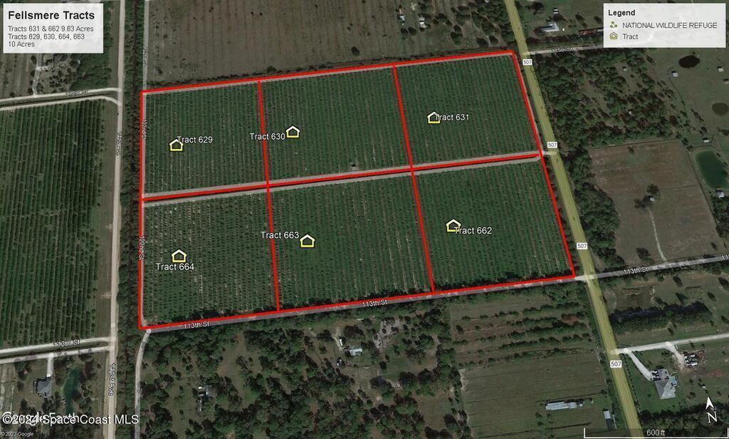 This 105 acre property has been subdivided into eleven parcels, each between 7.5 and 10 acres, giving you room to spread out. There are 11 lots total. Whether you're dreaming of building a custom home, starting a hobby farm, keeping horses, or simply having a quiet retreat away from it all, these lots offer the space and freedom to make it happen.Living in Fellsmere means enjoying wide-open skies and natural beauty right outside your door. Just a few minutes away you'll find the St. Sebastian River Preserve State Park, with miles of trails and amazing wildlife, and Blue Cypress Lake, known for its incredible fishing and bird-watching. Everyday conveniences are close too -- there's a Publix supermarket just down the road, and with Sebastian, Vero Beach, and I-95 only a short drive away, you'll have shopping, dining, and beaches within easy reach. Whether you choose one parcel or combine several, this property allows you to create your own space.