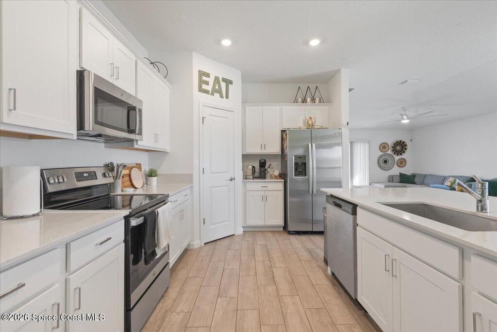 Ceiling Fan(s), Kitchen Island, Open Floorplan, Primary Bathroom - Shower No Tub, Split Bedrooms, Walk-In Closet(s)