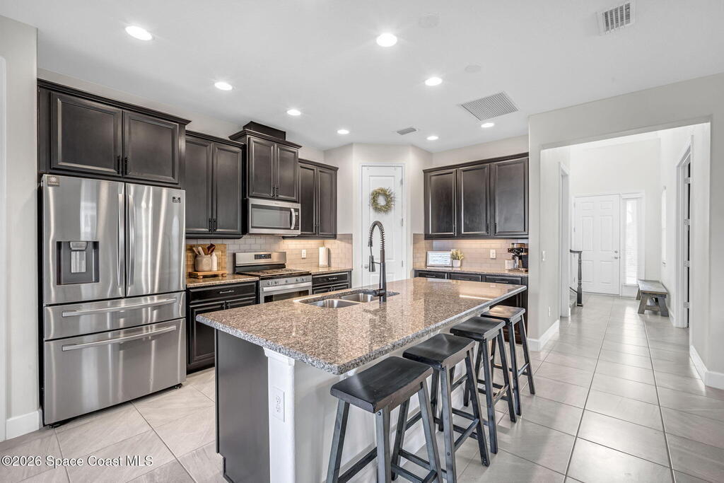 Property BELOW appraised value. 2020-built home in Sierra Cove has 4 bedrooms, 3.5 baths, plus a dedicated office. This home has MANY upgrades including: Roof replaced in 2024, AC 2020, and tankless water heater offers added peace of mind. Whole house gutters on the exterior, impact windows on the second story and front of home, and an added Mini Split unit to the garage. 8ft doors throughout. Interior of the home is freshly painted, and color sealed grout tile through all common areas. The kitchen boasts a large island with granite counters and upgraded hardware. Smart Appliances and Gas range along with brand new dishwasher and disposal. Common area has a custom built electric fireplace that brings life into the living area. Master Bedroom is on first floor with an large bathroom, massive walk in closet, soaking tub, and walk in shower. Upstairs, all bedrooms have generous closet space. Two bedrooms share a bathroom with double vanity, and additional bedroom with en-suite. Addison