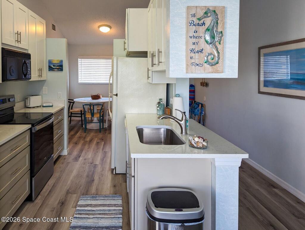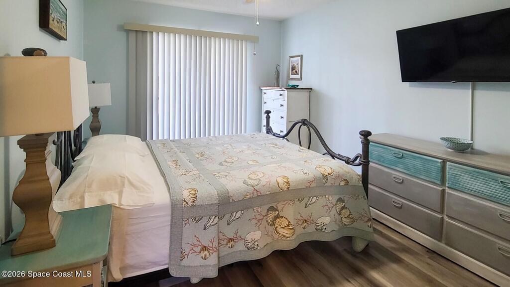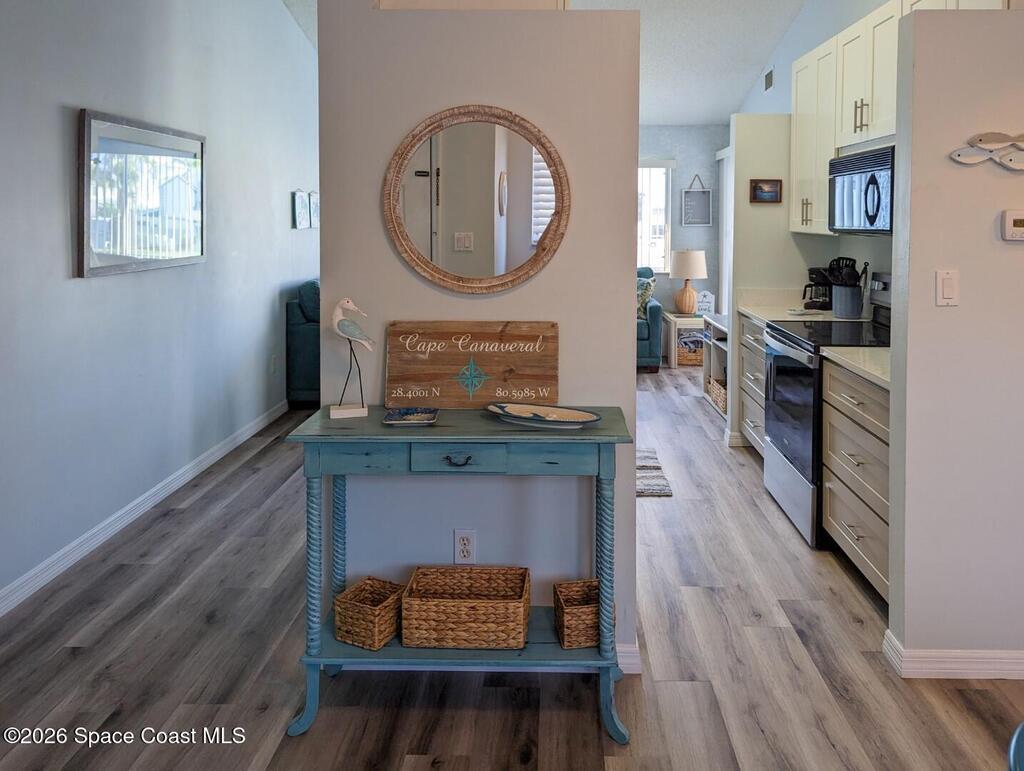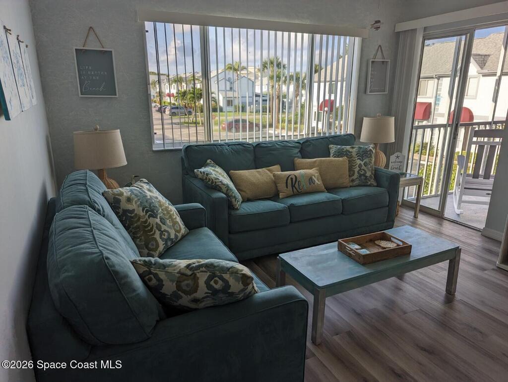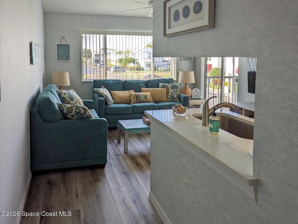 This spacious upstairs 1-bedroom, 1-bath condo offers comfort, style, and an unbeatable beachside location. Enjoy a screened balcony porch, ideal for unwinding in a peaceful setting. The condo has been thoughtfully updated with a renovated kitchen, new flooring, fresh paint, popcorn ceilings removed, and newer HVAC and ductwork, providing modern appeal and peace of mind.Just steps from the beach, this home is located in a gated Port Canaveral community featuring private beach access, three pools, and racquet & tennis courts. Free parking and close proximity to dining, entertainment, cruise terminals, and the world-famous Cocoa Beach make this an excellent choice for a primary residence, vacation retreat, or investment opportunity. Enjoy ocean breezes by day and cruise ships or rocket launches by night--this is beach living at its finest