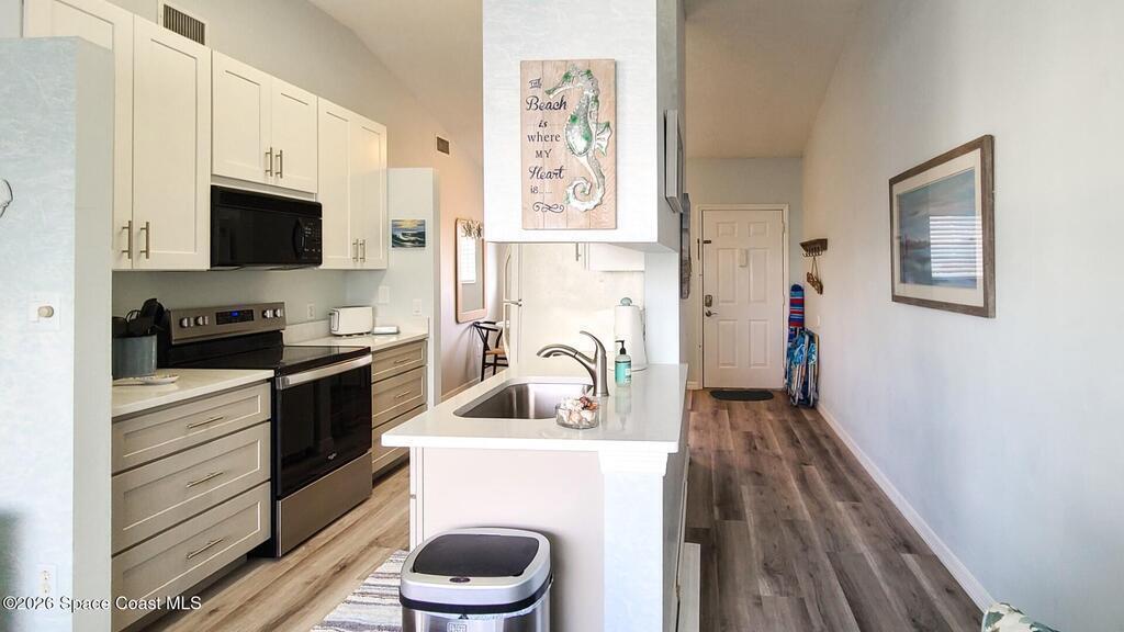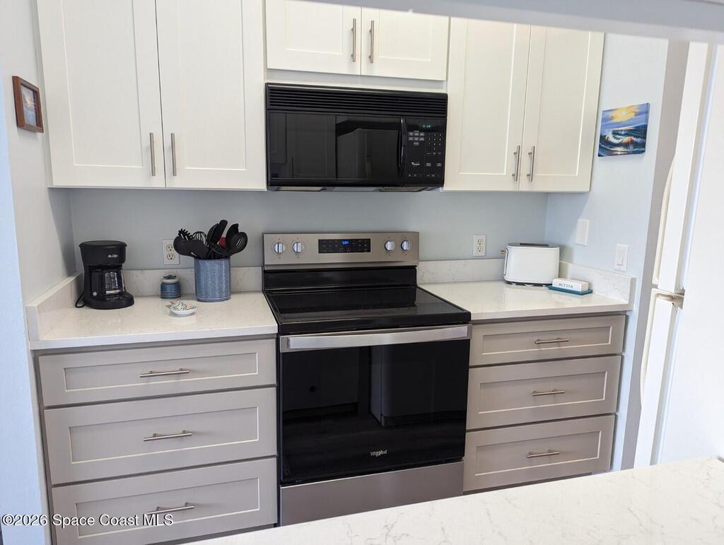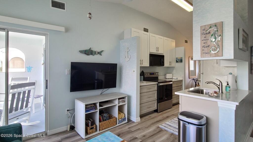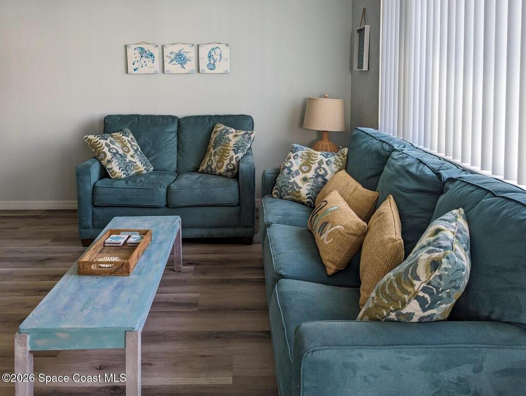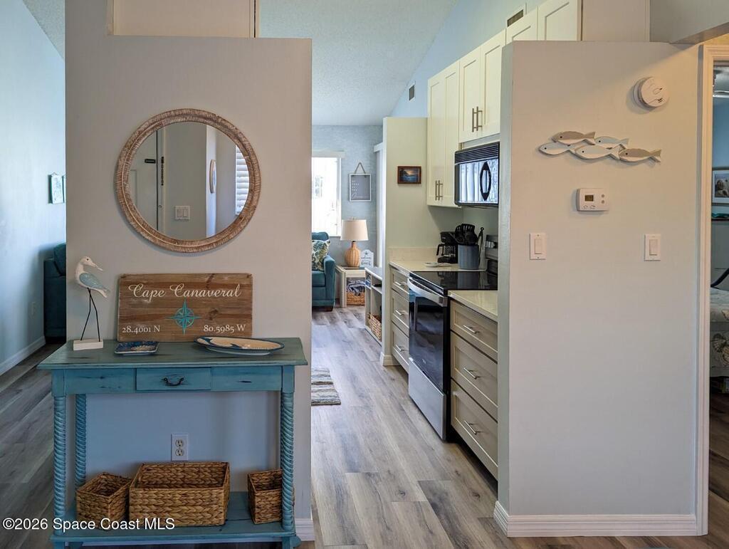This spacious upstairs 1-bedroom, 1-bath condo offers comfort, style, and an unbeatable beachside location. Enjoy a screened balcony porch, ideal for unwinding in a peaceful setting. The condo has been thoughtfully updated with a renovated kitchen, new flooring, fresh paint, popcorn ceilings removed, and newer HVAC and ductwork, providing modern appeal and peace of mind.Just steps from the beach, this home is located in a gated Port Canaveral community featuring private beach access, three pools, and racquet & tennis courts. Free parking and close proximity to dining, entertainment, cruise terminals, and the world-famous Cocoa Beach make this an excellent choice for a primary residence, vacation retreat, or investment opportunity. Enjoy ocean breezes by day and cruise ships or rocket launches by night--this is beach living at its finest
