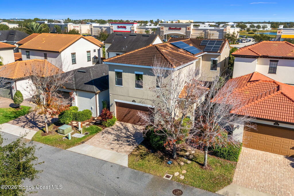 Exceptional walkability meets timeless design in this beautifully crafted home located in the heart of Arrivas Village. Drawing inspiration from historic Florida architecture, this residence offers character, comfort, and modern efficiency including solar panels to help lower monthly utility costs.Designed for flexible living, the home features four bedrooms, four and a half baths, plus a versatile bonus space. The main living area is bright and open, with a spacious kitchen centered around a large island that flows into an expansive living room. Oversized doors and windows invite natural light and open to a private courtyard, creating a seamless indoor-outdoor experience ideal for relaxing or entertaining.A first floor bedroom with a full bathroom provides an excellent option for guests, extended family, or a home office. Upstairs, the primary suite offers a private balcony, dual walk-in closets, and a luxurious bathroom with a soaking tub, walk-in shower, and double vanities