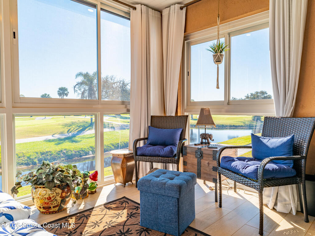 FULLY REMODELED GOLF VIEW CONDO -- IMPACT WINDOWS -- LOW MAINTENANCE LIVING.Impeccably updated second-floor condo in the Sun 'n Green 55+ community, professionally renovated by licensed contractors and truly move-in ready. This 1-bedroom, 1.5-bath residence features a new powder room, HVAC system, thermostat, complete ductwork, water heater, front and storm doors, fresh paint, luxury vinyl flooring, carpet and tile as well as impact windows and slider, and a newly enclosed all-weather patio overlooking the golf course and water. The spacious shower has been fully replaced, and elegant plantation shutters with custom window treatments are included throughout. Laundry conveniently located steps from front door shared with only two neighboring units. Designated parking plus guest spaces available. Despite its location near Wickham Road and Lake Washington, the home is surprisingly quiet inside. Come see for yourself, you will be glad you did!