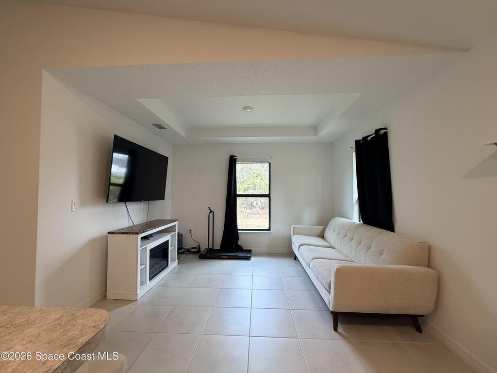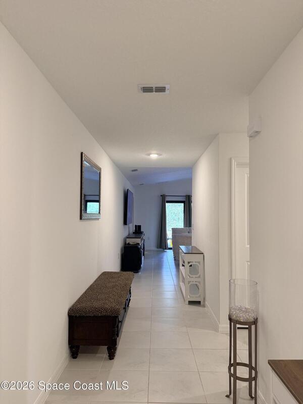 New 2025 build 4 bed 2 bath home in Palm Bay for rent.. Corner lot, spacious open floor plan, tile in common areas. Covered patio in back, quiet neighborhood. Washer, dryer and lawn care included in rent.