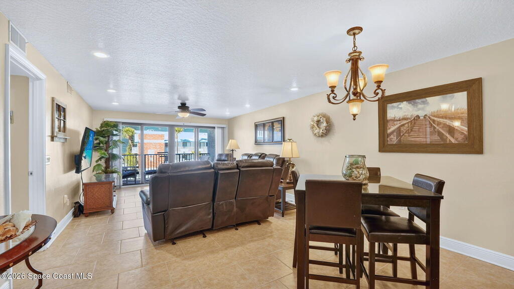 Turn-key furnished investment coastal condo with daily, weekly or monthly rental options support excellent investment potential. This updated 2-bedroom, 2-bath unit in Sandcastles Condominiums offers 1, 296 sq. ft. of beachside living just steps from the ocean. Located on the second floor, the condo features tile flooring, spacious bedrooms, updated baths, and a private balcony to enjoy ocean breezes. The bright, open layout makes it ideal as a vacation rental, second home, or full-time residence. Amenities include a heated pool, spa, sauna, tennis and pickleball courts, private beach access, on-site management, detached garage, and ample parking. Conveniently located on North Atlantic Ave near downtown Cocoa Beach, the Pier, Ron Jons, and popular rocket launch viewing areas.