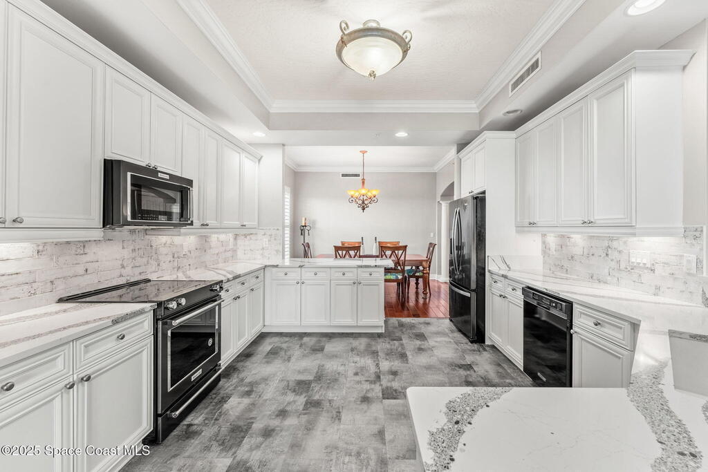 Riverfront living takes center stage in this top floor panoramic-view condo overlooking the scenic Intracoastal, where every detail is designed for comfort, beauty & ease. Behind 32ft of waterfrontage is a brand-new AC to keeps things crisp, while 10' ceilings, crown molding, & impact-rated windows w/ timeless plantation shutters elevate every space. 8' sliders--outfitted w/ electric blinds--open wide to a breezy balcony perfect for soaking in those endless water views. The kitchen shines w/ quartz counters, KitchenAid & Whirlpool appliances, a GE fridge & breakfast bar, while hardwood floors add warmth to the dining & living areas. All bedrooms feature en-suite baths, including a luxe primary suite w/ double-door entry, built-in closets, marble-floored bath, jetted tub & glass shower. Enjoy the ease of fresh paint, full laundry w/ sink & 3 garage spaces (32, 33, 34). The amenity-rich & SIRS complete building offers a spa, pool, gym, clubhouse, elevator & sunset dock.