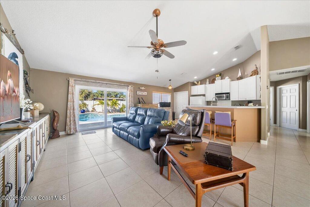 Welcome to easy coastal living in the heart of Indialantic, just nine homes from the beach. Built in 2001, this well-maintained 3-bedroom, 2-bath home offers over 1, 700 square feet of thoughtfully designed living space with a bright, open feel throughout. Vaulted ceilings and abundant natural light highlight the open floor plan, where the kitchen flows seamlessly into the main living area--perfect for entertaining or relaxed everyday living.The layout of this home provides privacy, with spacious secondary bedrooms and a generous primary suite featuring bamboo flooring, ample closet space, and a primary bath with excellent storage and a walk-in shower. Tile flooring runs throughout the main living areas for easy maintenance and a clean coastal vibe.Step outside to your own private retreat: a saltwater pool surrounded by expansive decking, ideal for soaking up the Florida sun.