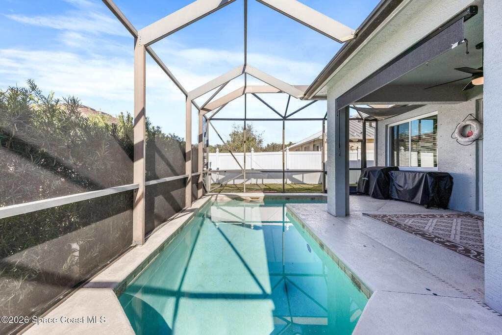 Lakefront living in Sebastian River Landing! This 4-bedroom, 2-bath home with a 3-car garage offers a screened pool, extended paver patio, and fenced side yard for pets. Enjoy a no-carpet interior, upgraded kitchen with custom built cabinet organizers, under-cabinet lighting, smart appliances, and a hands-free faucet. Impact windows, standing seam metal roof, 2021 AC, additional mini-split systems for energy efficiency, smart blinds, oversized primary closet, and a garage workshop with loft complete this exceptional home.