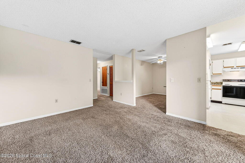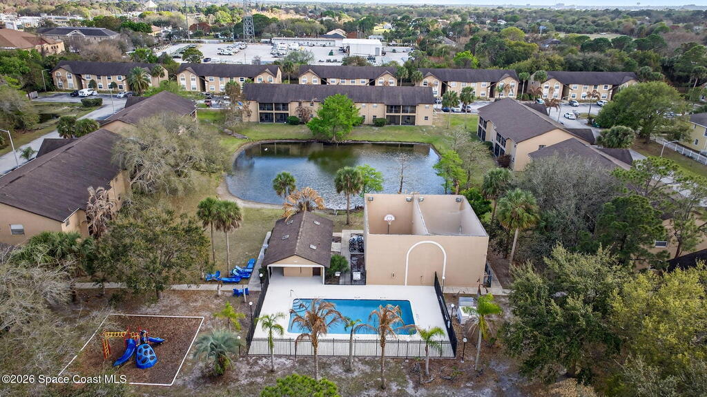 Centrally located spacious condo park like setting. View of the pond. First floor unit. Breakfast bar separate dining area. Community pool and playground. Easy access to 1-95 and the Beach Line. Ten minutes from Cape Canaveral. A Must See.