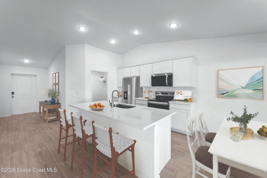 Breakfast Bar, Eat-in Kitchen, Entrance Foyer, His and Hers Closets, Kitchen Island, Open Floorplan, Pantry, Primary Bathroom - Shower No Tub, Primary Downstairs, Split Bedrooms, Vaulted Ceiling(s)