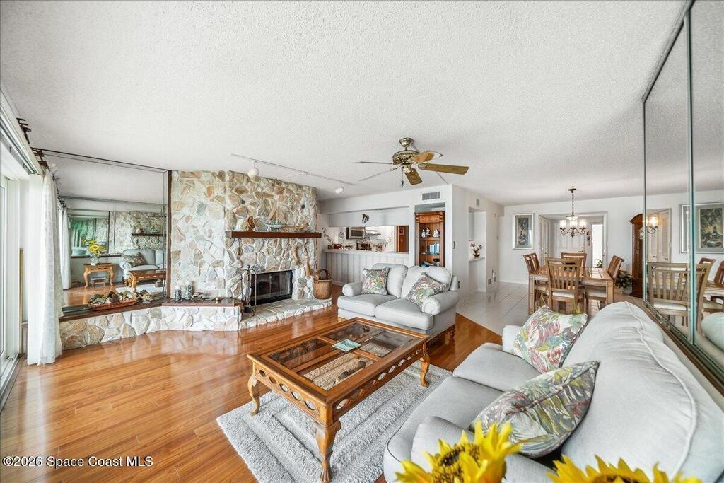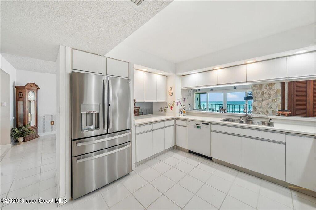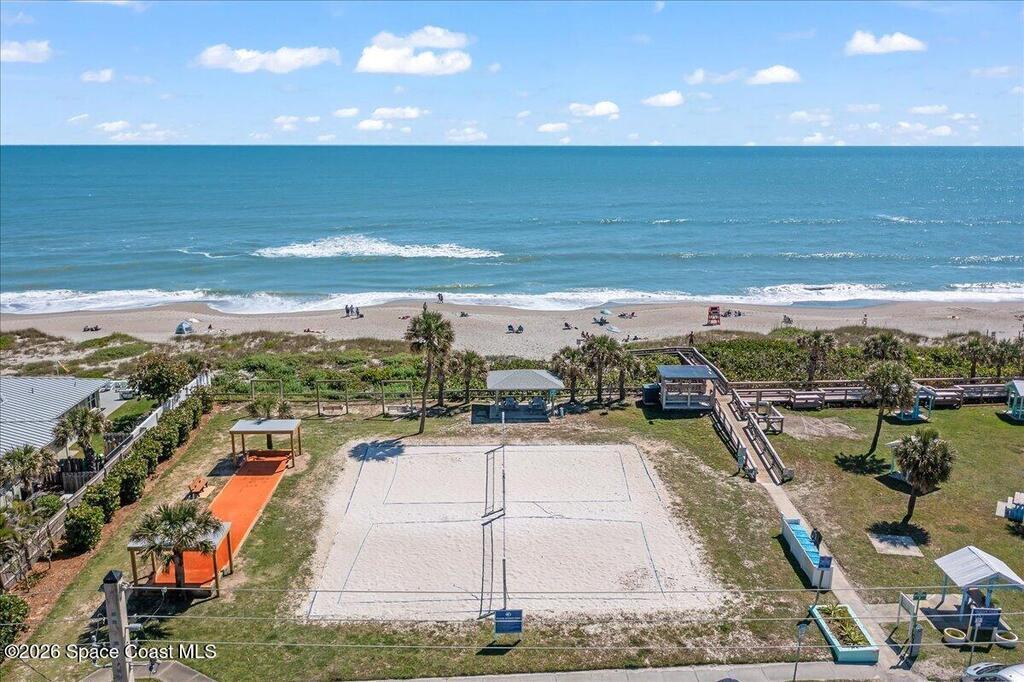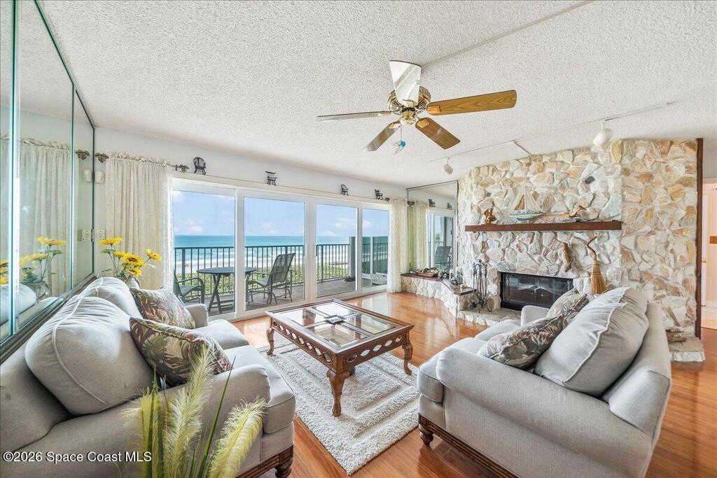 Experience tranquility and breath-taking sunrises over the ocean's horizon from the privacy of your living room, balcony or sand covered beach via your PRIVATE AND DIRECT beach access! This one-story residence boasts over 2, 000 LSF, 3 bedrooms and 2 and 1/2 bathrooms, with stone faced fireplace, a spacious primary suite with ocean views, a walk-in closet, jetted tub & separate shower. Relax with motorized shutters for added storm protection. Building elevator with access to your 1st floor garage parking and storage unit. Resort like community amenities include a sun kissed heated pool, clubhouse w/ fitness center and saunas, tennis/pickle ball courts and putting green and efficient onsite management. Close to wonderful restaurants, A rated schools, lush parks and a multitude of water related activities. Melbourne Beach is a quaint, seaside paradise and one of Brevard's most desirable communities.