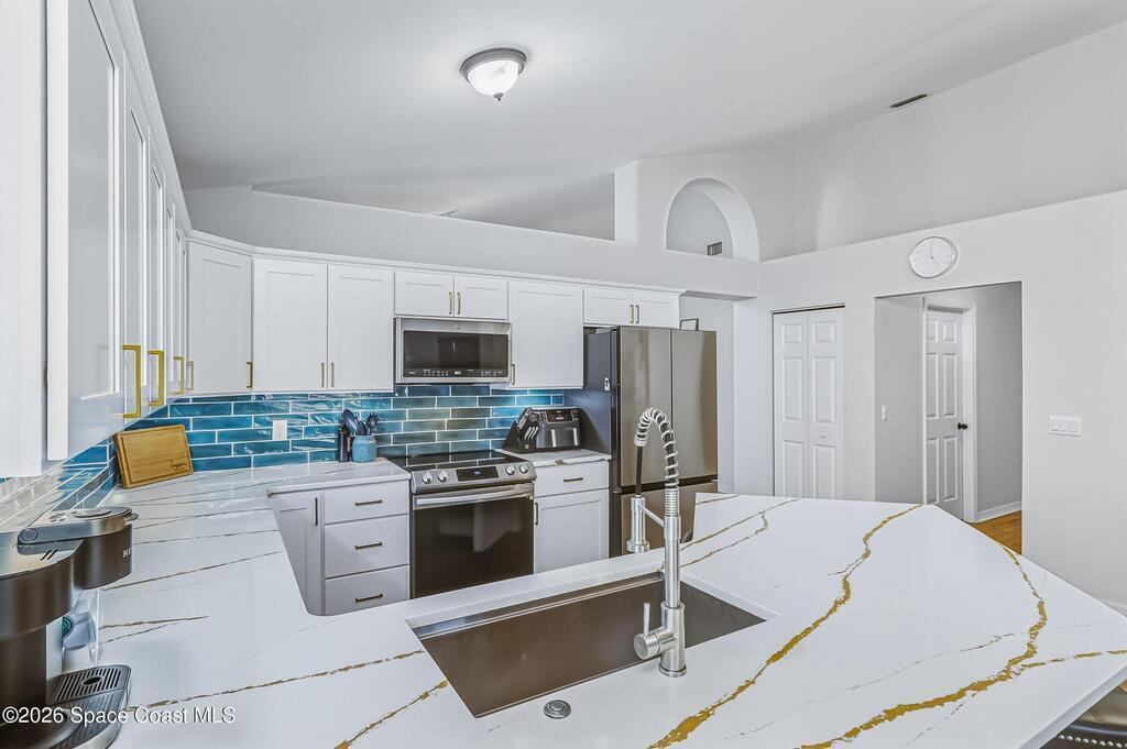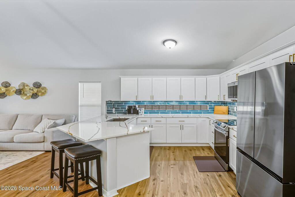 This gorgeous 4-bedroom, 2-bath home in the highly desirable Westbrooke community of West Melbourne offers the perfect blend of comfort, style, and convenience. With 1, 793 sq. ft. of living space and a versatile 2-car garage currently used as a gym, the layout is functional and inviting. Major expenses covered: 2024 Roof and 2019 A/C, plus high-end updates in the kitchen and both baths!The heart of the home is the brand-new, fully renovated kitchen featuring premium quartz countertops, soft-close solid-wood cabinetry, and sleek under-cabinet lighting for a clean, modern look. All appliances are new, including an energy-efficient induction stove.Both primary and guest bathrooms have been gutted and redesigned with fresh, contemporary finishes that add value and comfort. Inside and out, this home has been meticulously cared for--every space feels crisp, updated, and move-in ready.Close to shopping, dining, and major roadways. Schedule your showing today!