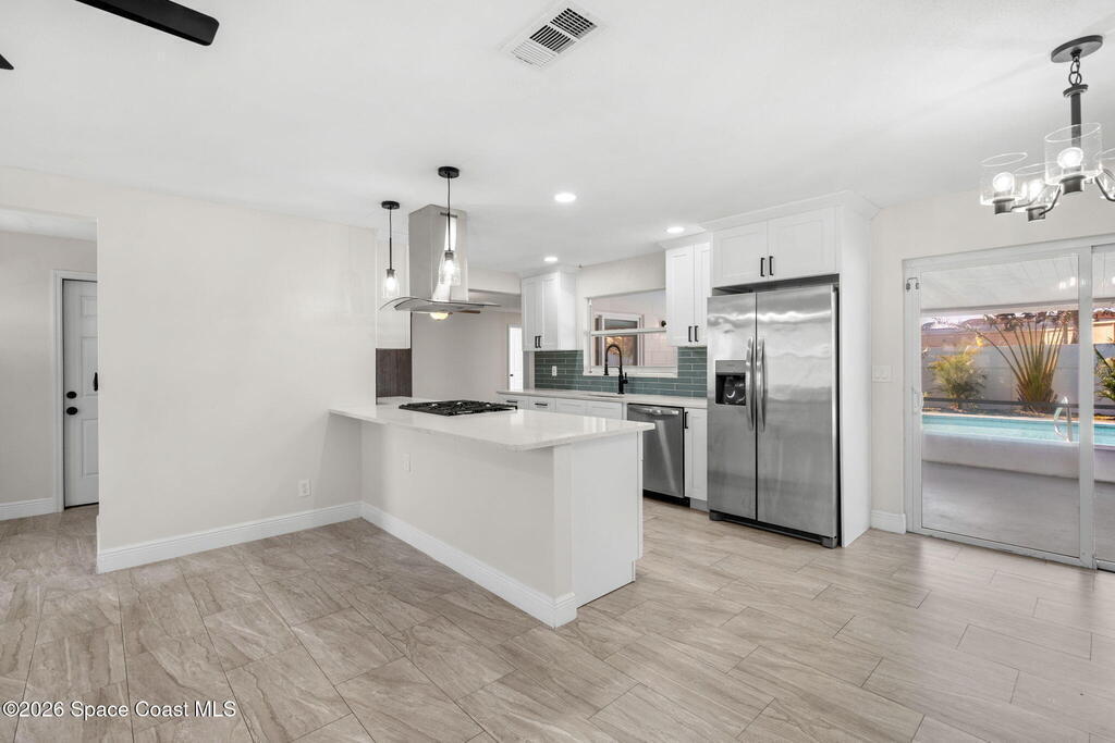 Remodeled highly coveted Diana Shores POOL HOME! No cast iron! True 4 bedroom SPLIT floorplan with rare indoor laundry! New kitchens, baths, floors, interior & exterior paint. Extra wide driveway to park all your toys, trailer, RV or boat. Desirable floorplan with two living spaces, perfect to double as a home office, playroom, etc. Plenty of storage with double pantry in kitchen, hall closet & master walk in closet. Pool recently RESURFACED, large screen porch and plenty of backyard space for your pets, fully FENCED. Fantastic Central MI location, equidistant to 520 & 528, minutes to Target, Aldi & Publix. 45 minutes to Orlando, 40 minutes to airport. 10 minutes to Cruise port & beaches.