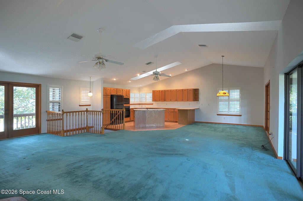 Ceiling Fan(s), Entrance Foyer, His and Hers Closets, Kitchen Island, Open Floorplan, Primary Bathroom -Tub with Separate Shower, Skylight(s), Split Bedrooms, Vaulted Ceiling(s), Walk-In Closet(s)