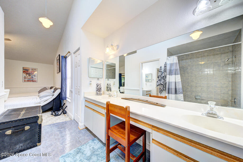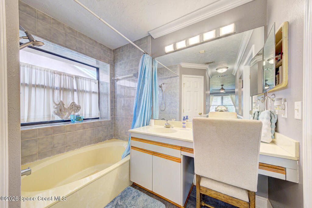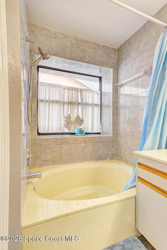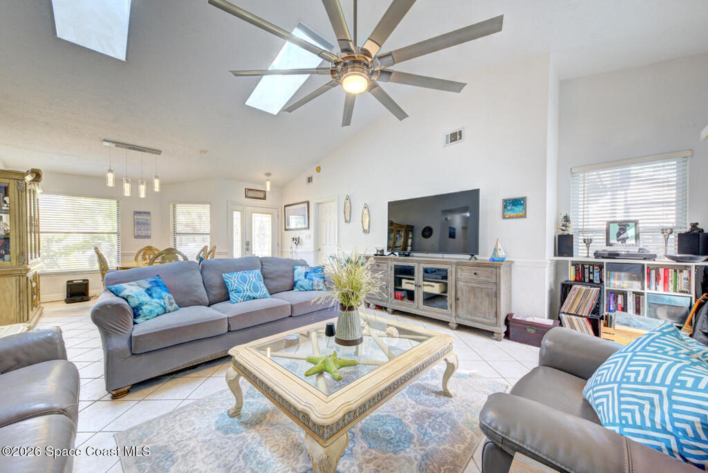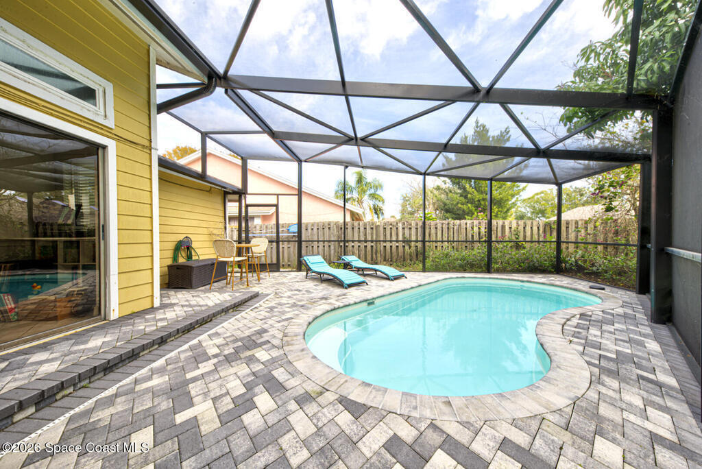 Spaciously Designed, 3 Bedroom, 2 Bath, Split Plan, 2 Car Garage, Pool Home with 1757 sqft under air (2495 under roof) located in the neighborhood of La Cita in Titusville. This home has much to offer with an open living room/dining room combo, vaulted ceiling, lots of natural lighting, skylights (replaced in 2025), completely updated (in 2023) eat-in kitchen w/custom wooden cabinetry, solid surface (stone) countertops & stainless/black appliances, large bedrooms to include TWO (2) primary suites with walk-in closets (1 with separate walk-in shower and separate soaker tub), large inside laundry room, screened-in back patio and pool area with professionally installed pavers and path through back yard lined with mature tropical foliage. Roof replaced in 2025, HVAC replaced in Jan 2026, 2 hurricane strength sliding glass doors, the sundown windows above the sliders and exterior pool door all replaced in 2021. Low HOA under $200 annually. This property is worth taking a look at...