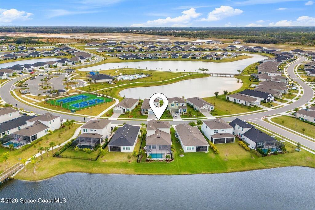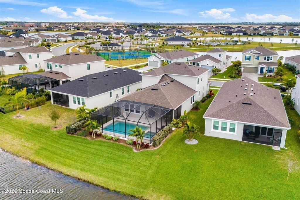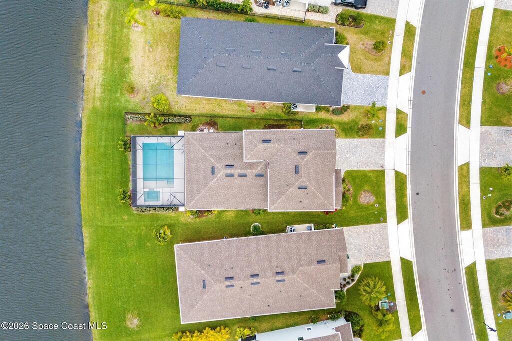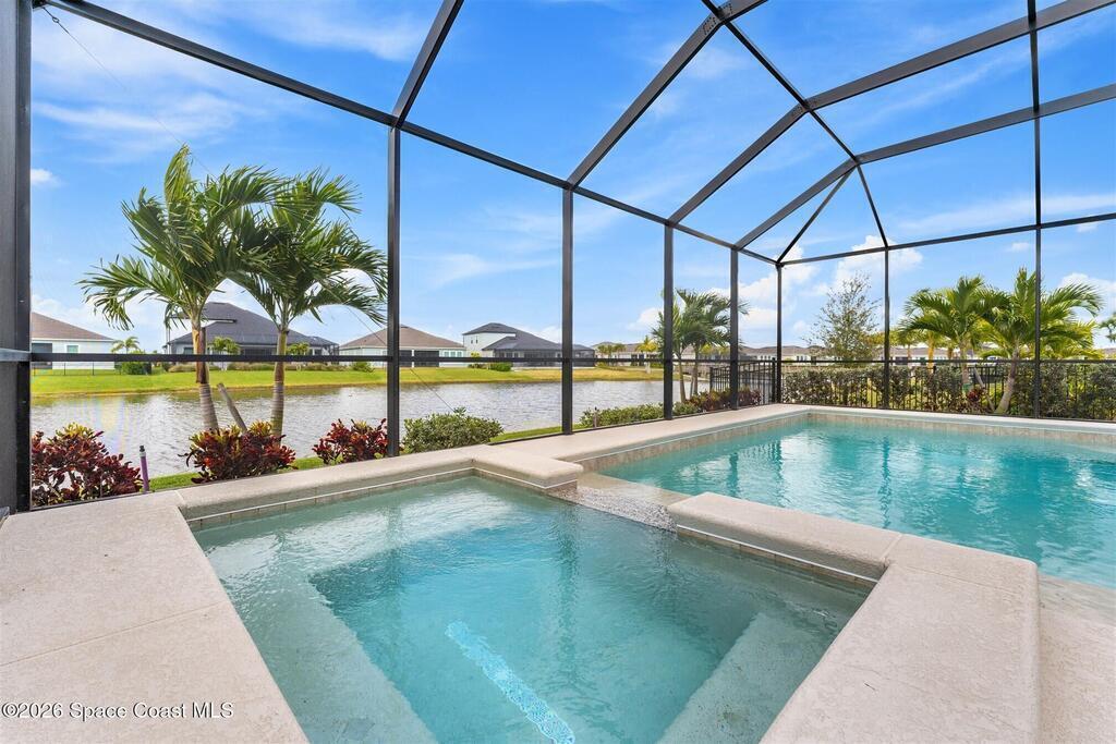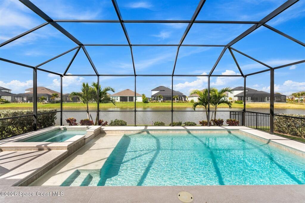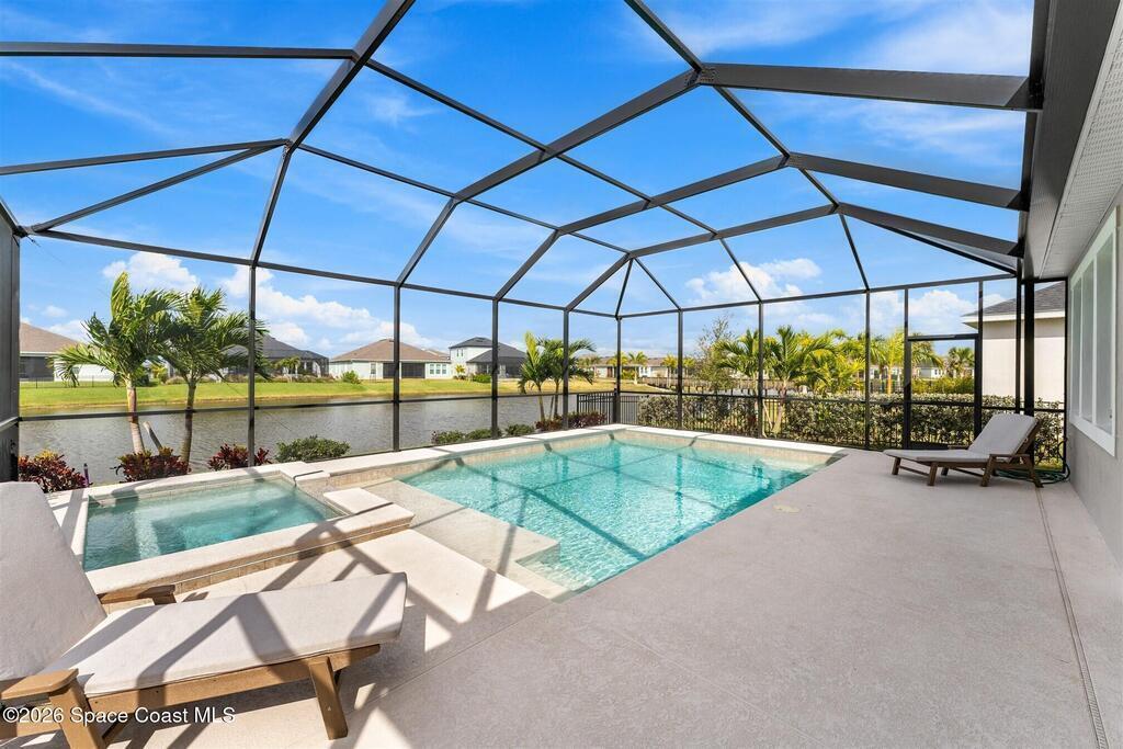 Almost new, waterfront, and move-in ready -- this 2024 Carina in Pangea Park delivers modern luxury, flexible living, and resort-style outdoor space in one of Viera West's most desirable communities. From the open-concept design and gourmet kitchen to the custom pool with spa and serene water views, every detail is thoughtfully designed for effortless Florida living -- all within a highly regarded school district and minutes to everything Viera has to offer. The two-story floor plan features an open-concept layout designed for entertaining and everyday living. The home offers four bedrooms and three and a half bathrooms, plus a versatile Flex Room suitable for a Study or fifth bedroom. Upstairs, a large Loft provides additional living space ideal for a media room, playroom, or family gathering area, while an en-suite bedroom adjacent to the loft creates an excellent secondary living area for multigenerational living, guests, or young adults. The primary suite