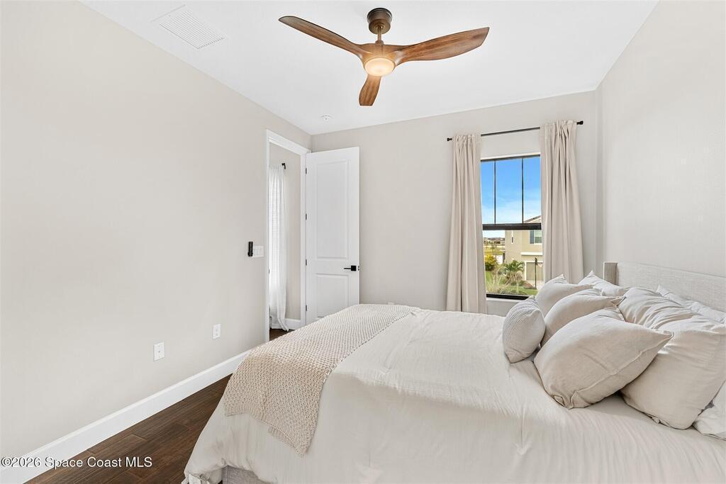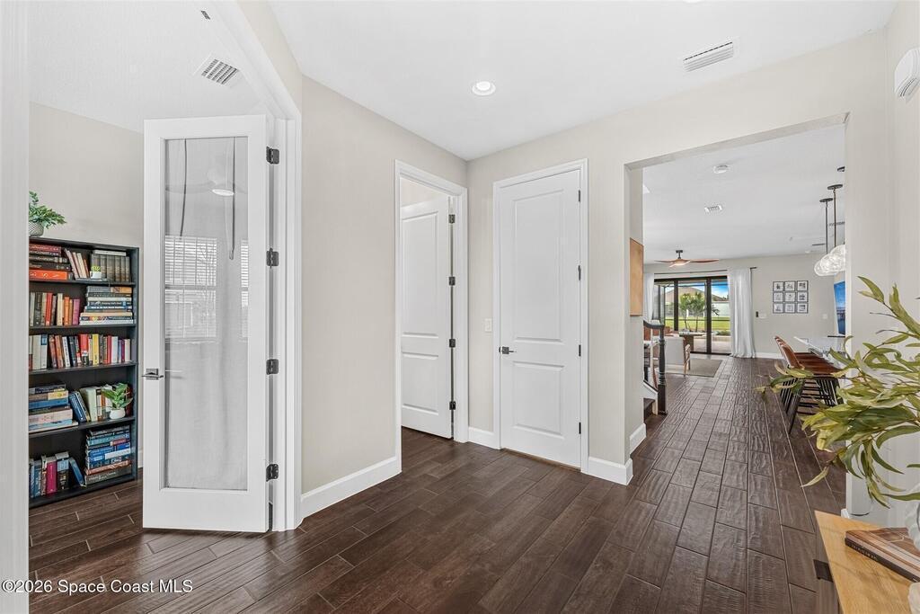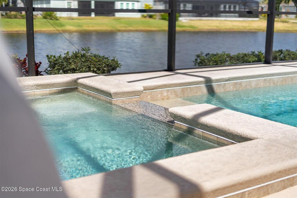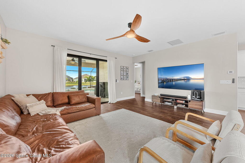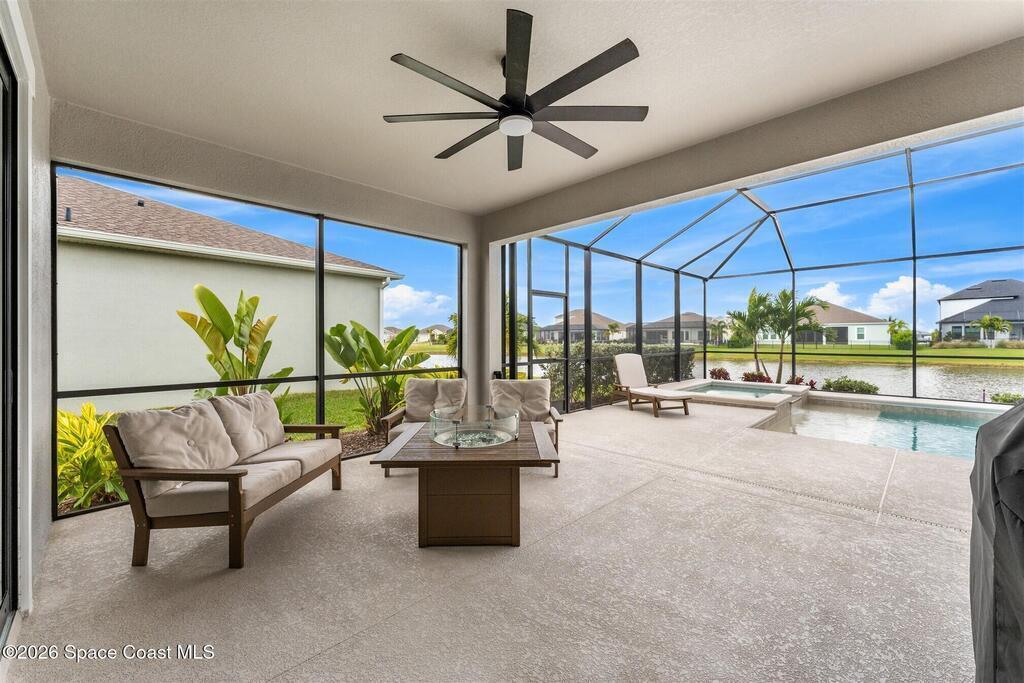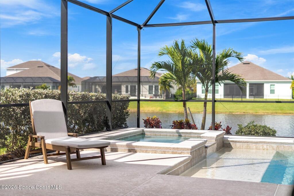 Almost new, waterfront, and move-in ready -- this 2024 Carina in Pangea Park delivers modern luxury, flexible living, and resort-style outdoor space in one of Viera West's most desirable communities. From the open-concept design and gourmet kitchen to the custom pool with spa and serene water views, every detail is thoughtfully designed for effortless Florida living -- all within a highly regarded school district and minutes to everything Viera has to offer. The two-story floor plan features an open-concept layout designed for entertaining and everyday living. The home offers four bedrooms and three and a half bathrooms, plus a versatile Flex Room suitable for a Study or fifth bedroom. Upstairs, a large Loft provides additional living space ideal for a media room, playroom, or family gathering area, while an en-suite bedroom adjacent to the loft creates an excellent secondary living area for multigenerational living, guests, or young adults. The primary suite