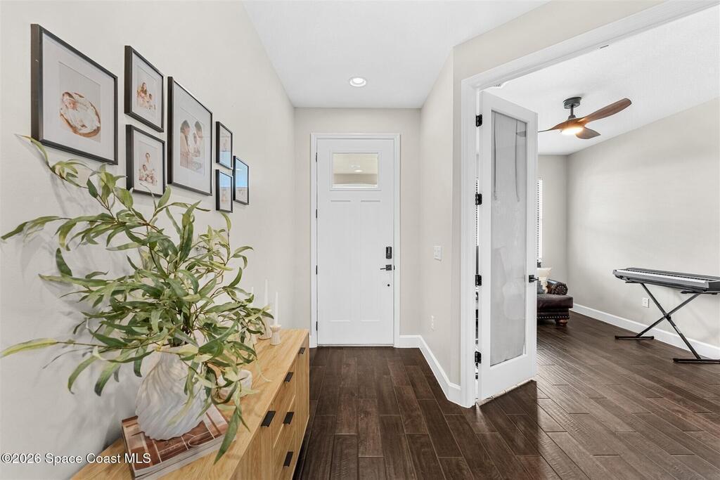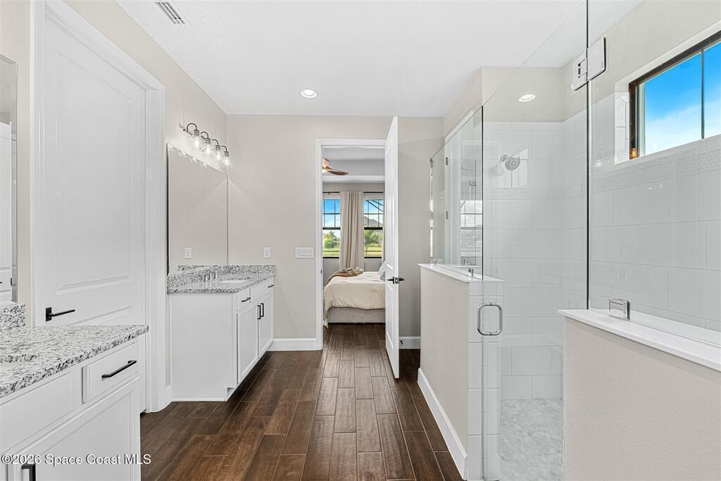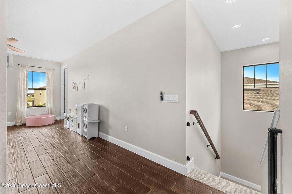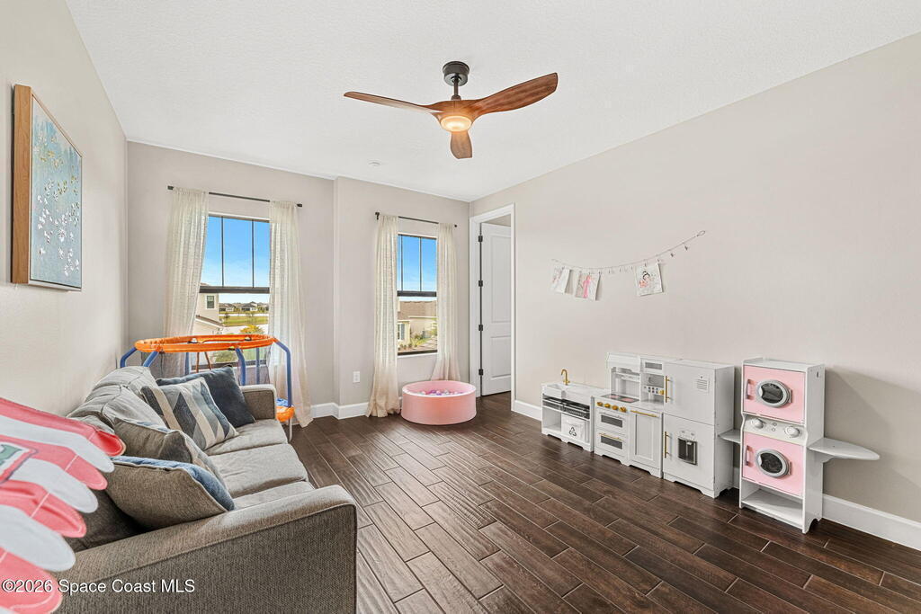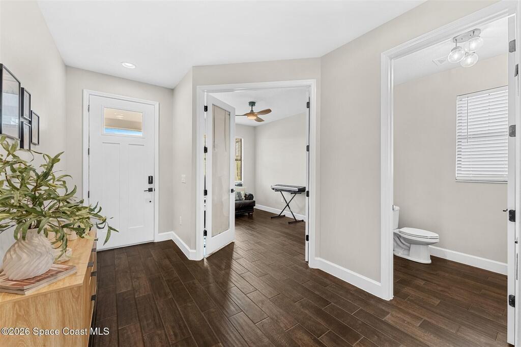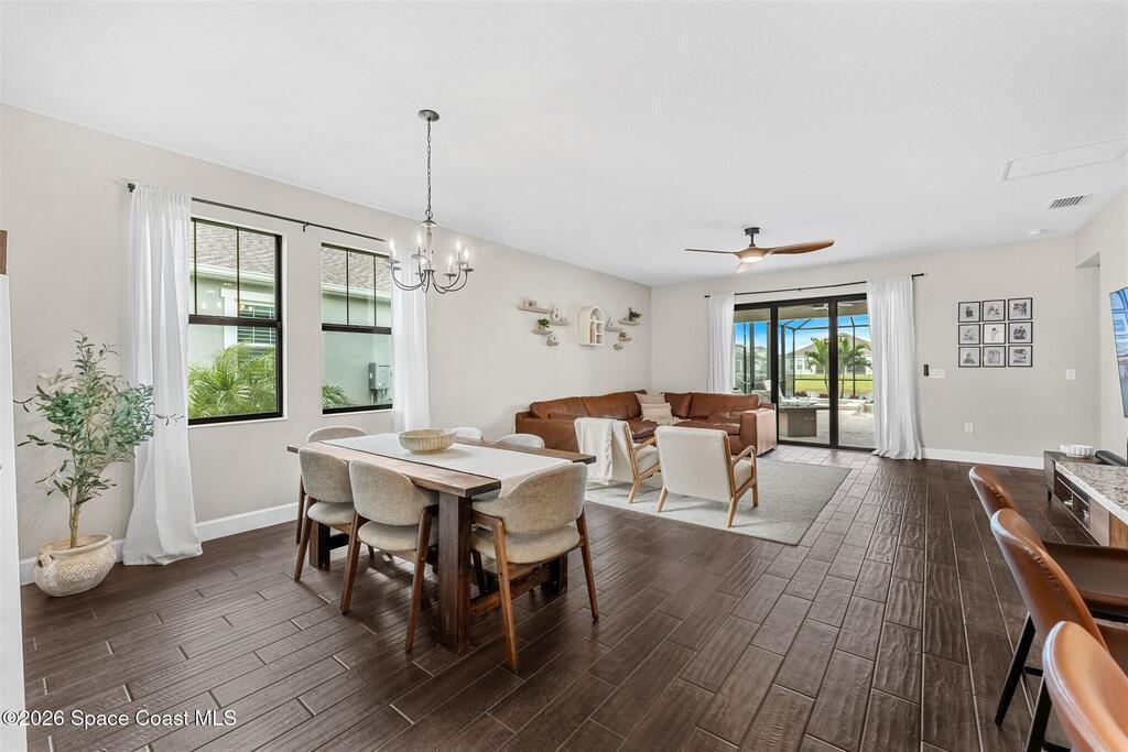 Almost new, waterfront, and move-in ready -- this 2024 Carina in Pangea Park delivers modern luxury, flexible living, and resort-style outdoor space in one of Viera West's most desirable communities. From the open-concept design and gourmet kitchen to the custom pool with spa and serene water views, every detail is thoughtfully designed for effortless Florida living -- all within a highly regarded school district and minutes to everything Viera has to offer. The two-story floor plan features an open-concept layout designed for entertaining and everyday living. The home offers four bedrooms and three and a half bathrooms, plus a versatile Flex Room suitable for a Study or fifth bedroom. Upstairs, a large Loft provides additional living space ideal for a media room, playroom, or family gathering area, while an en-suite bedroom adjacent to the loft creates an excellent secondary living area for multigenerational living, guests, or young adults. The primary suite