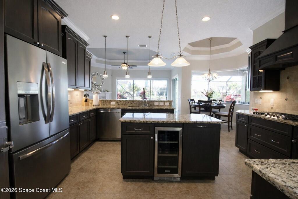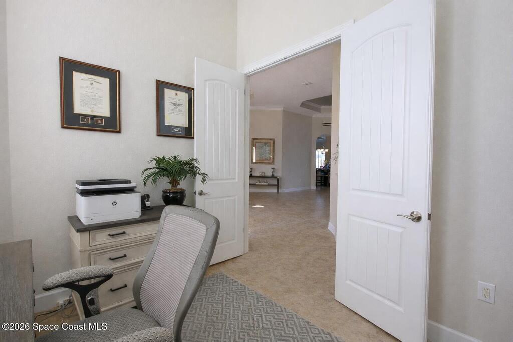 This is the pool home you've been waiting for in beautiful Levanto! 4 bedroom, PLUS office, 3 bathrooms, 3 car garage, split floorplan. Gorgeous, heated, salt water filtration pool with lots of patio space, outdoor shower, even a free-standing hot tub. This home features 12ft ceilings with crown molding and timeless tile. There are granite counters in the kitchen (and bathrooms) with solid wood cabinetry, newer stainless appliances, built in ovens, a gas range, large pantry and a wine fridge! In the primary suite, you will find a walk-in shower, a jetted tub, 2 vanities and a private water closet (not to mention his/hers walk-in closets). The 3 car garage comes with professional grade flooring. Community amenities include pool, tennis, pickleball, basketball, playgrounds and pavilions. Short walk, bike ride, golf cart ride to desirable schools. A/C 2022, water heater 2022, kitchen appliances 2022, pool pump 2023, pool enclosure re-screen 2024. Fenced yard!Bring your offer TODAY!