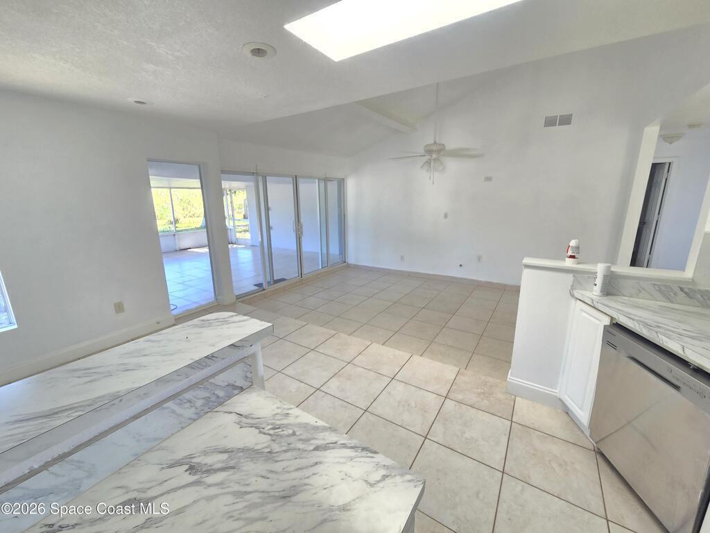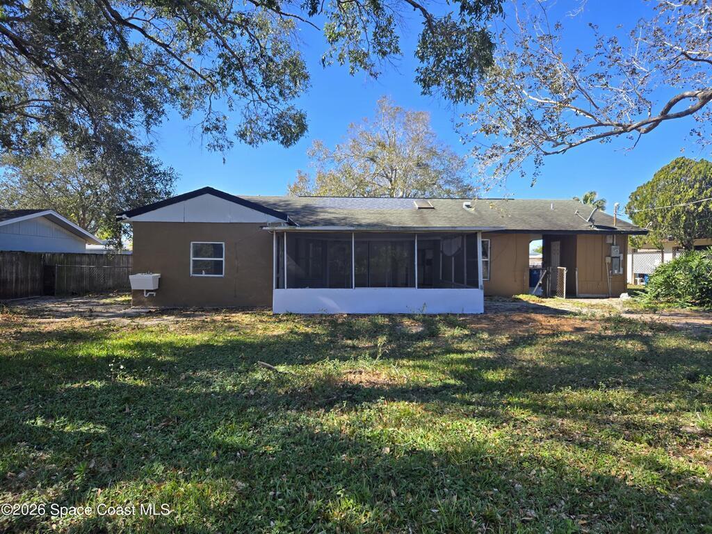 Discover this spacious 4-bedroom, 2-bath home in a great NE Palm Bay location! Enjoy an open-concept layout with tile flooring throughout and a newer kitchen featuring plenty of cabinet and counter space. The home includes a large enclosed porch, perfect for relaxing or entertaining, plus a private, fenced backyard with tons of room to spread out. Chain-link fencing offers added security and convenience. Close to schools, shopping, and major roadways--this home has it all!