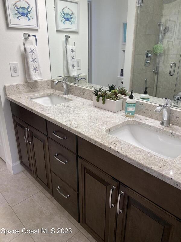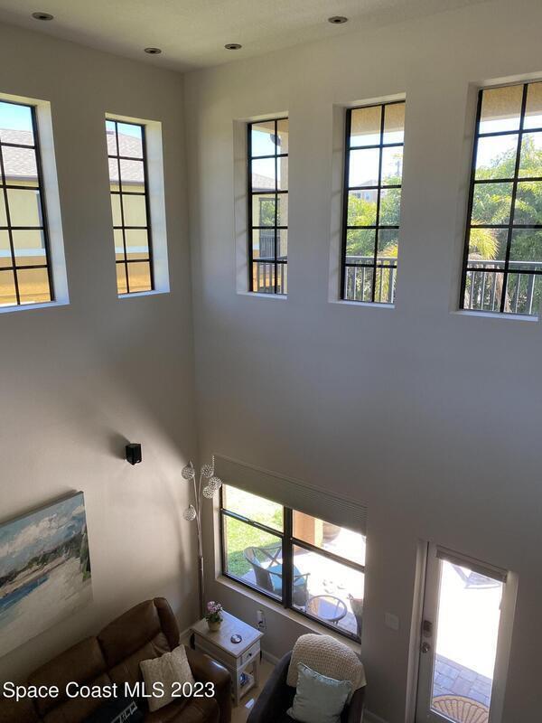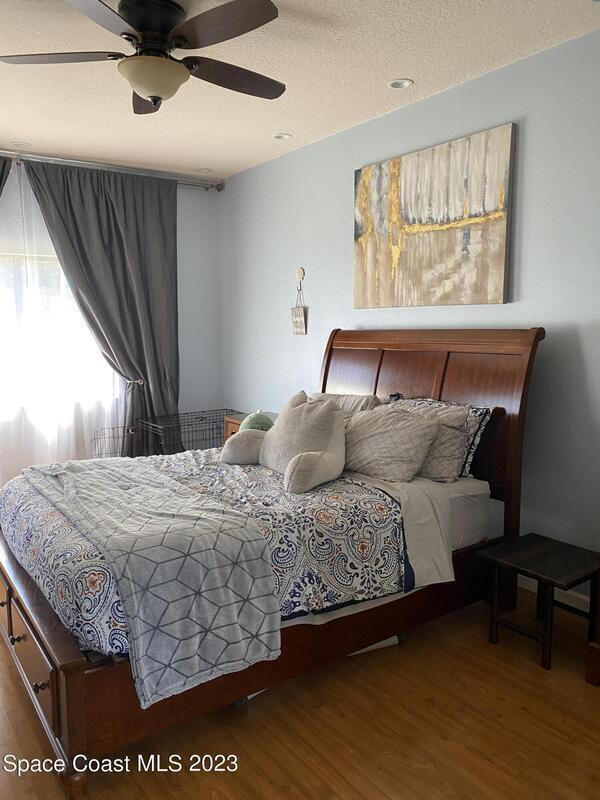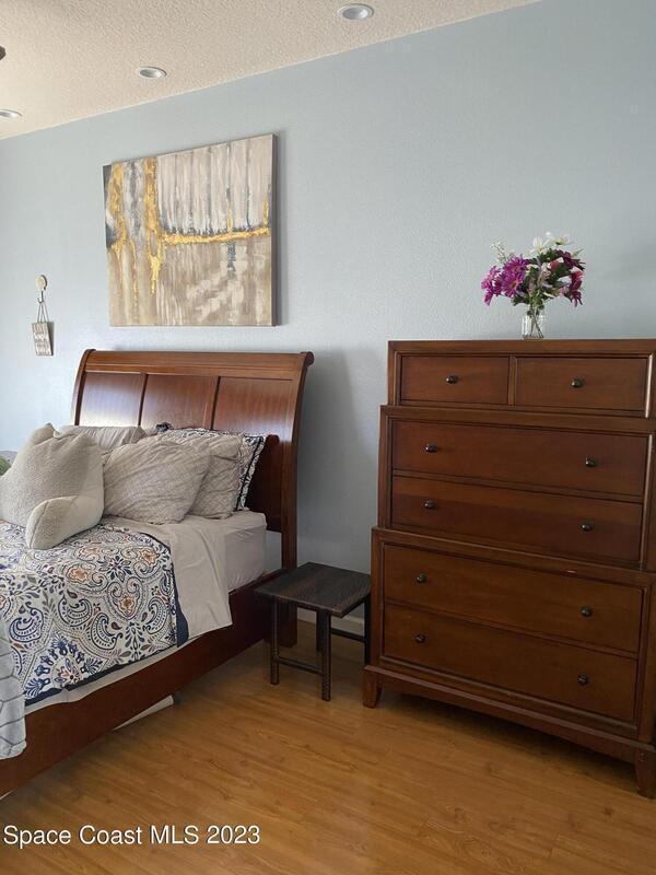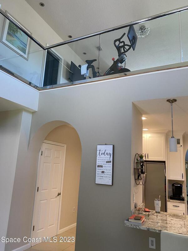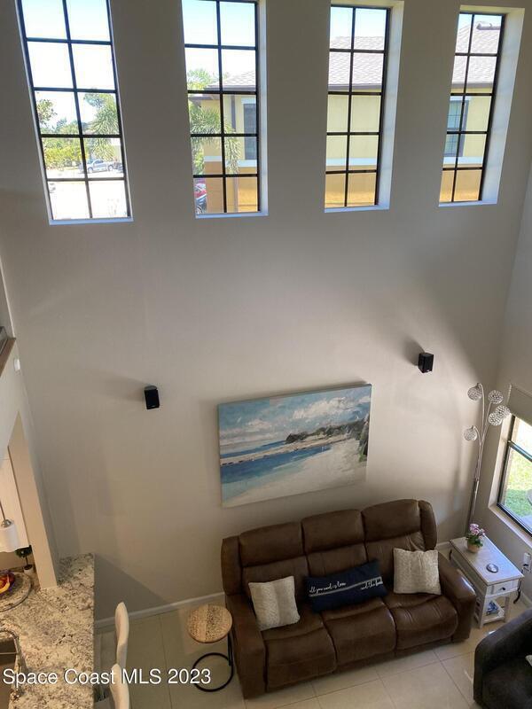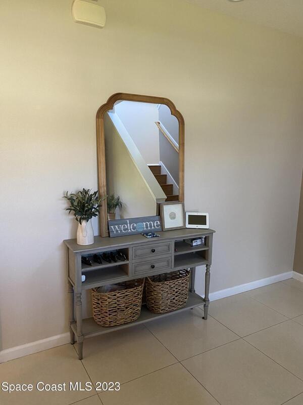 Unique opportunity for someone waiting for their house to be built or in the area for work assignment or looking to relocate and have not found their place yet. Short term rental, not an Airbnb, not a month-to-month rental, move in ready and close to everything on the Space Coast. Available April 1st to October 31st! Furnished with everything you need, down to the hair dryer and coffee maker. Move-in ready for the short-term tenant (lease up 7 months) with utilities included. Kitchen is open to the dining area and family room, with lots of counterspace and breakfast bar. Living room takes you out to the outside trussed patio, perfect for relaxing or grilling! Large main bedroom is on the first floor and has slider out to the back patio, walk in closet, Main bath has dual sinks and walk in shower. Half bath for guest is located downstairs. Upstairs has a large loft area with office nook, lounge area with t.v. and overlooks the downstairs living room. 2nd apacious bedroom upstairs