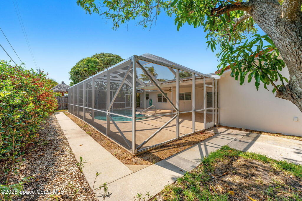 Just a breezy 4-minute bike ride from the beach, this sun-soaked property is a true coastal playground with serious short-term rental potential! Behind impact-rated windows & a durable tile roof, freshly painted interiors set a bright, welcoming tone, complemented by new under slab plumbing for added peace of mind. The layout blends form & function with formal living & dining rooms, a relaxed family room opening to the pool, & a well-appointed kitchen featuring granite countertops, a wall oven, stacked microwave, electric cooktop, a brand-new refrigerator, & sunny breakfast nook. Step through the sliders & into your private backyard oasis--complete with a heated saltwater pool featuring a new chlorine-free salt system, expansive screened lanai, & two sheds for added storage. The owner's suite boasts its own slider to the pool, walk-in closet, & en suite bath, while a pocket door smartly separates two generously sized guest bedrooms & a delightfully retro second bath. New Washer/Dryer.