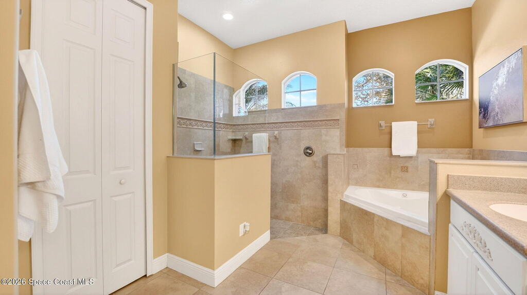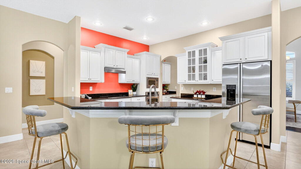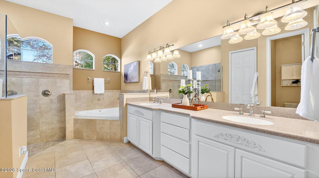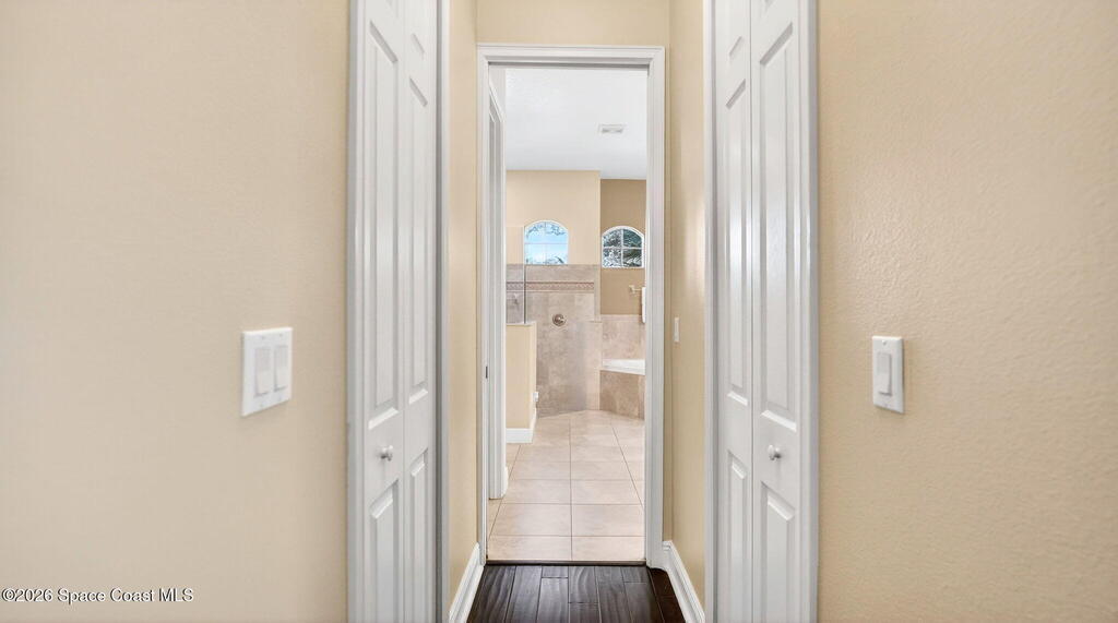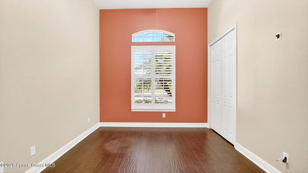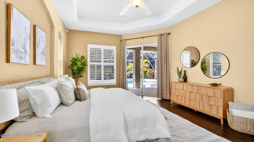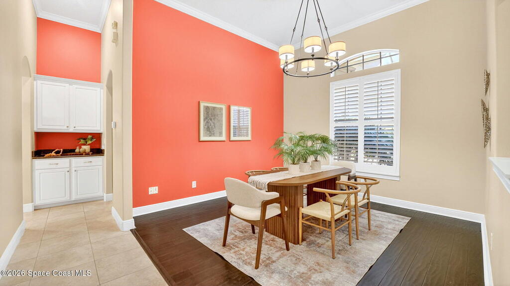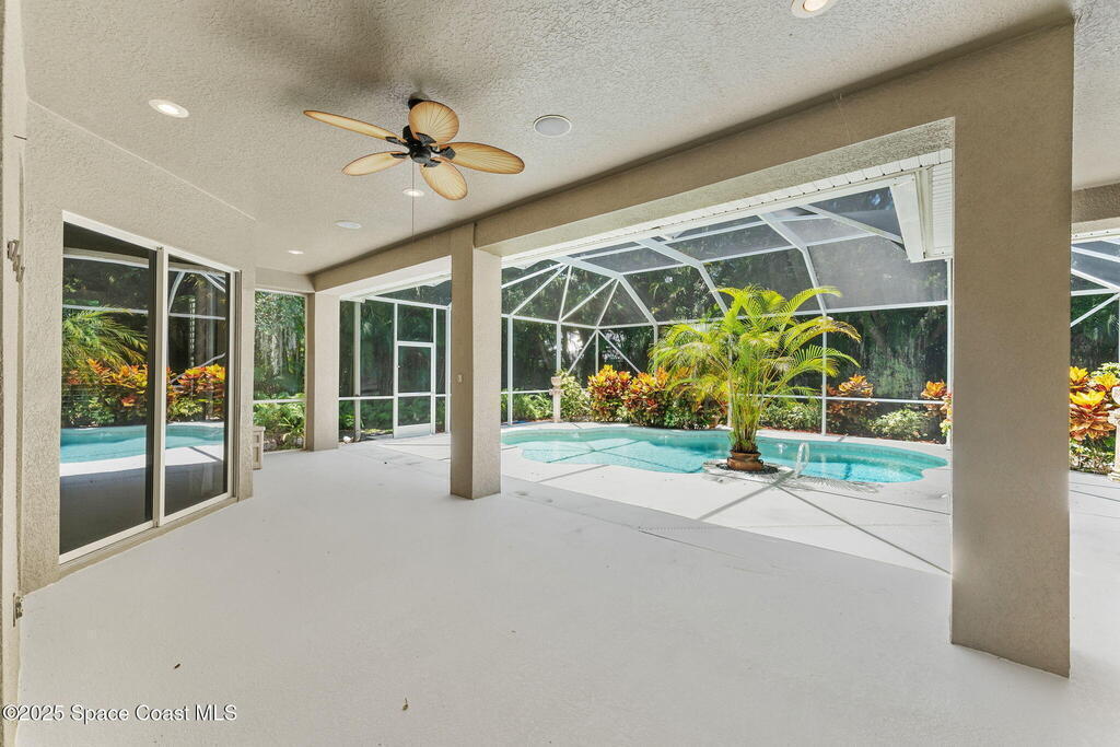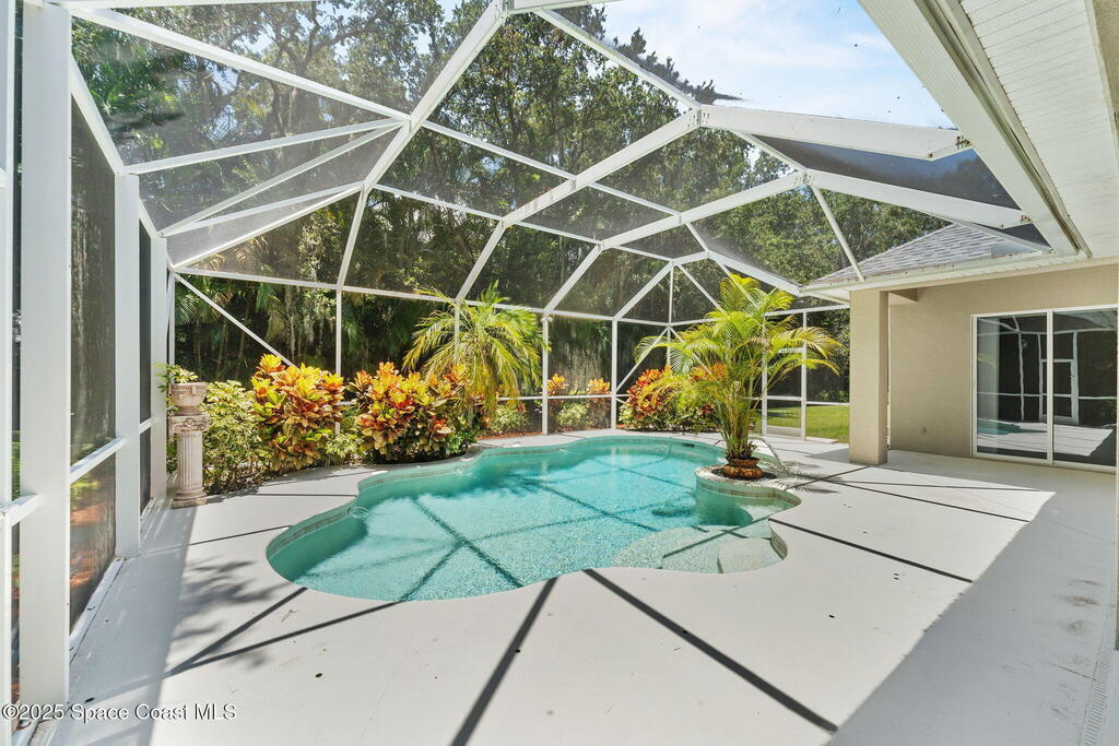 This custom-built pool home sits on a 1/2-acre lot with a peaceful preserve backdrop, offering exceptional privacy and space. Inside, soaring ceilings and an open, light-filled layout create a warm and welcoming feel from the moment you enter. The kitchen opens seamlessly to the living areas, making everyday living and entertaining easy. A versatile bonus room provides flexibility for a home office, playroom, media space, or multigenerational living. Step outside to a covered, screened patio overlooking the private backyard and sparkling pool--perfect for relaxing or hosting family and friends. Additional features include tile and wood flooring, plantation shutters, crown molding, an oversized 3-car garage, large paver driveway, and a 2019 roof. Located in an established community with mature surroundings and convenient access to Space Coast employers, beaches, and everyday amenities.
