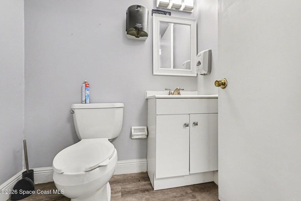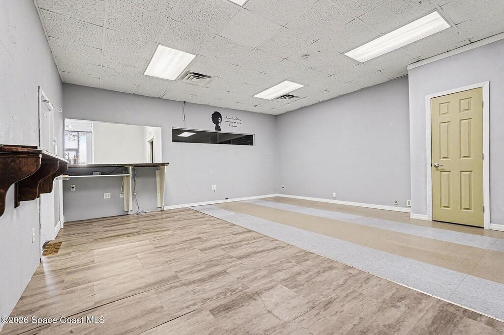 1219sqft of office/retail space on highly visible, high traffic Hibiscus Blvd just off of US1. 425 sq feet of garage/warehouse space with a roll up door for added storage for deliveries. Design the space to your needs, currently set up as a salon. 2 bathrooms. Parking lot. Adjacent professional offices.