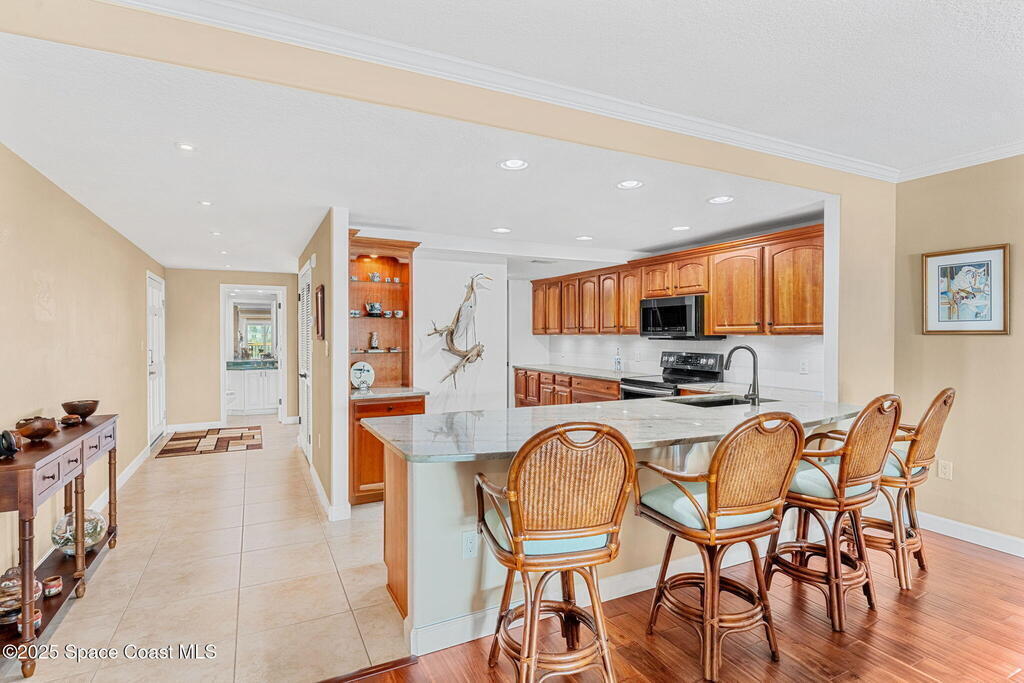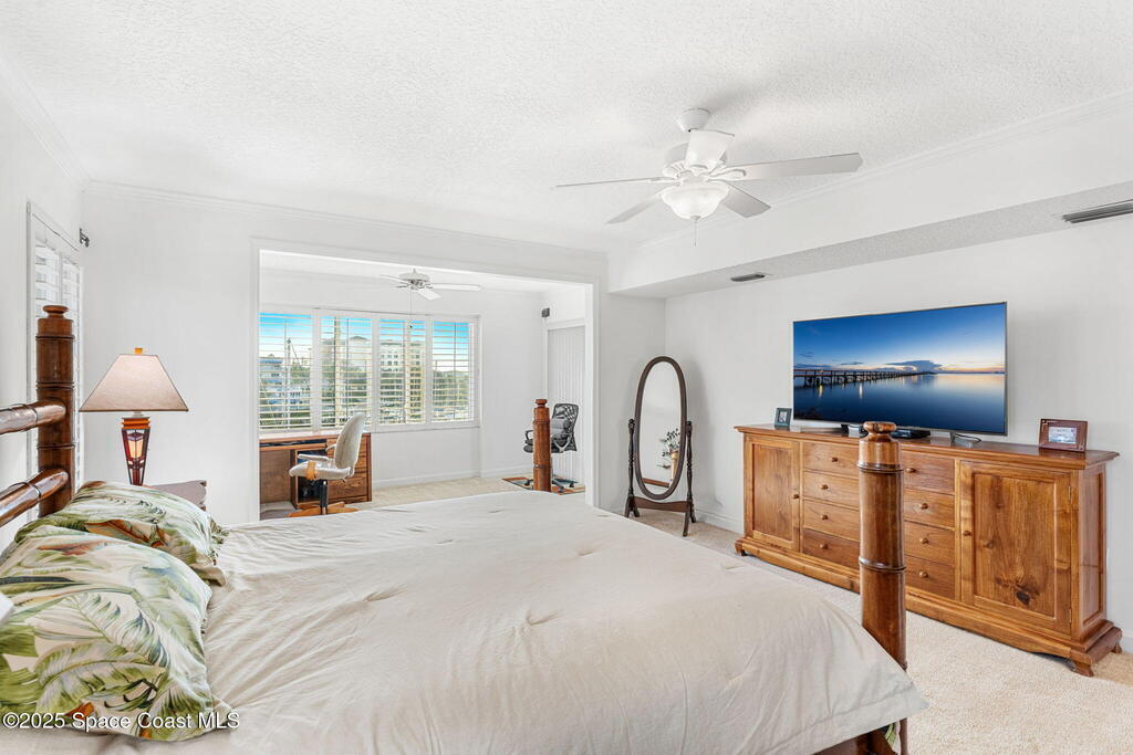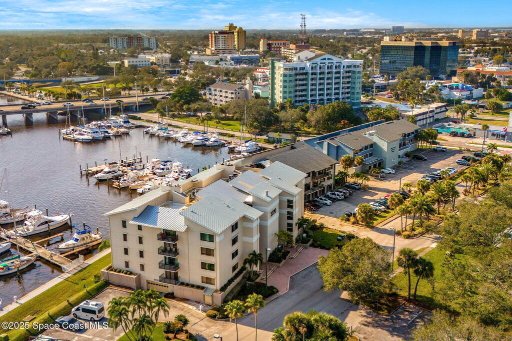 Views, views, views! This coveted top-floor, end unit in Melbourne Harbor delivers sweeping panoramas of Front Street Park, the Intracoastal Waterway, Melbourne Marina, Crane Creek, glowing sunrises, and unforgettable sunsets with manatees, dolphins, seabirds, and an incredible boat show as your daily backdrop. The open floor plan features a modern kitchen overlooking a spacious living area with fireplace, wet bar, and west-facing balcony. 2 covered balconies capture south and west exposures & provide a peaceful outdoor perspective on the ever changing nature show. The primary suite offers a fully renovated bath, walk-in shower, custom vanity, and sitting area. Hurricane shutters throughout, secure garage parking, extra guest parking, and a quiet shared pool complete the package. Just a short stroll to the Chart House and a variety of other downtown dining and nightlife & the beach is just minutes away. All SIRS requirements met and no assessments needed. A must see !