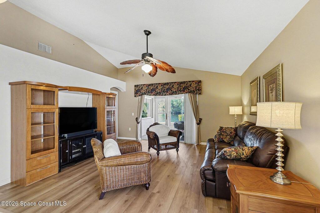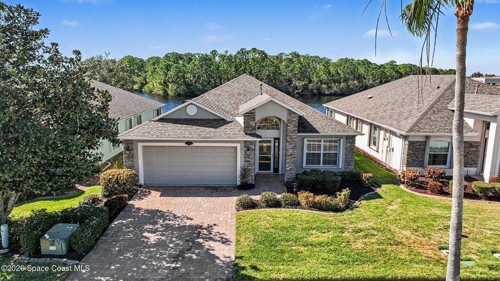Picturesque water views, exclusive neighborhood, with a location in East Viera that offers everything Brevard County has to offer!Floor plan offers comfort, style, vaulted ceilings, generous master bedroom with walk-in closet, ensuite and flex room, and true FL room with high grade windows overlooking the pristine waters.Paver driveway, hurricane shutters, LVP flooring, Cambria quartz countertops, new cabinet doors, fans, 2021 HVAC, 2020 Water Heater, 2018 Roof!This thoughtfully designed 3-bedroom, 2 bath was a single owner home, and furniture is negotiable. TRULY-MOVE IN READY!Be a part of this rare opportunity to enjoy peaceful living, water views and wildlife over coffee, and a community that is known to be the friendliest!Amenities include: Resort style heated pool/spa, pickleball/tennis courts, clubhouse, bocce ball courts, shuffleboard, and daily activity schedule full each day from morning until dark.HOA includes amenities, lawn services, paint home every 8 yrs.