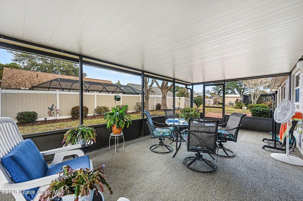 Spacious three bedroom 2 bath home located in a quiet neighborhood with no HOA. This move in ready home features many upgrades and a large family room with the kitchen overlooking the living space. Ideal for both everyday living and entertaining. Impact windows and impact rated garage door provide added peace of mind. The fenced backyard offers privacy and a 300 sq ft screened porch, while beautiful landscaping enhances the home's curb appeal. Conveniently located near parks, beaches, shopping, dining, I95, and everything Viera has to offer, with Orlando International Airport less than an hour away. A short distance to Patrick Space Force Base. A perfect combination of comfort, location and lifestyle. Truly move in ready!