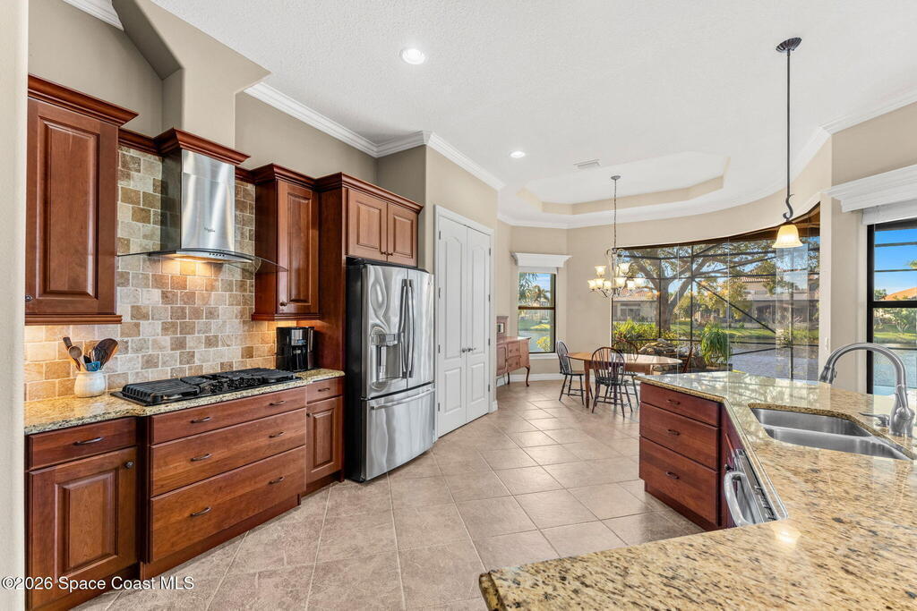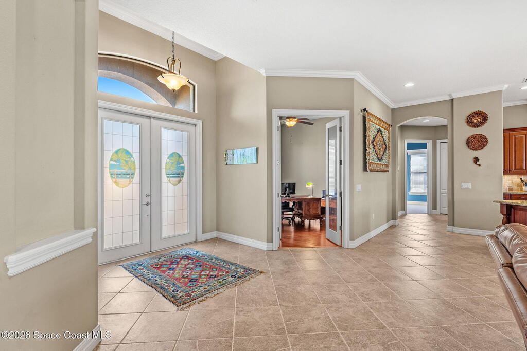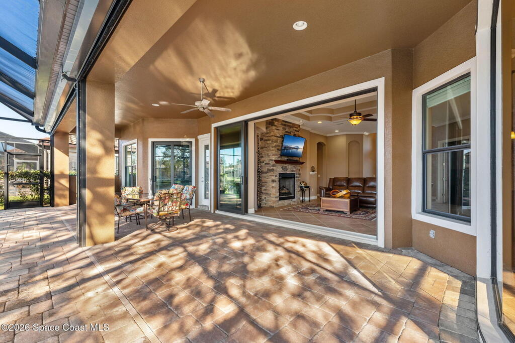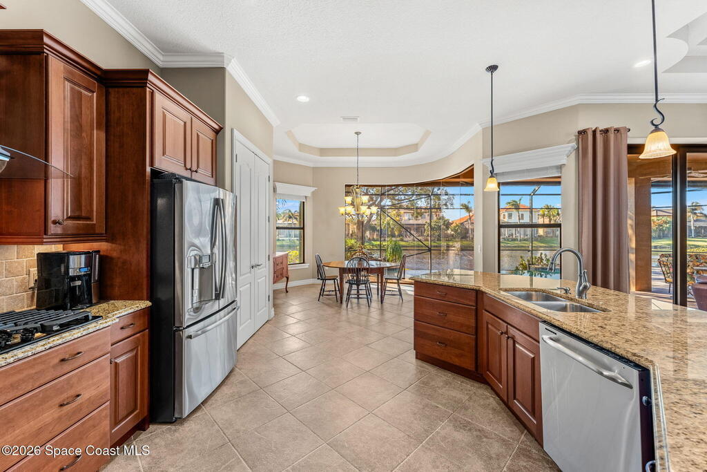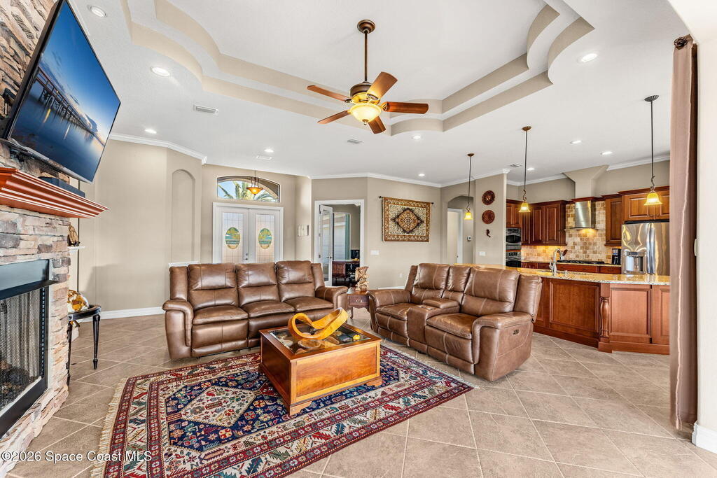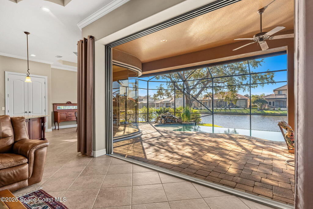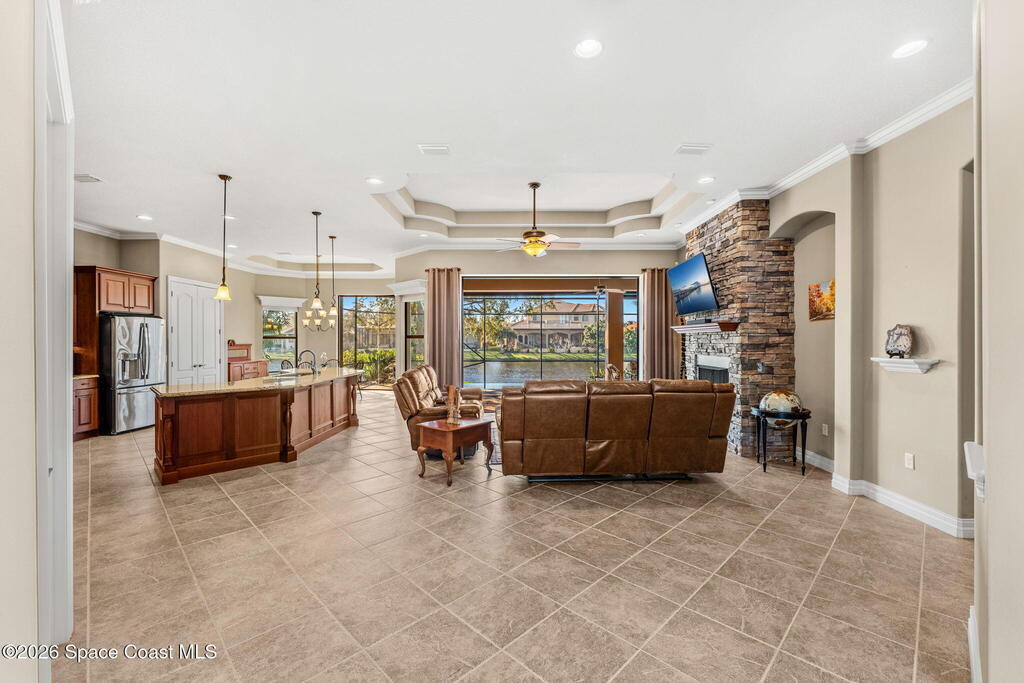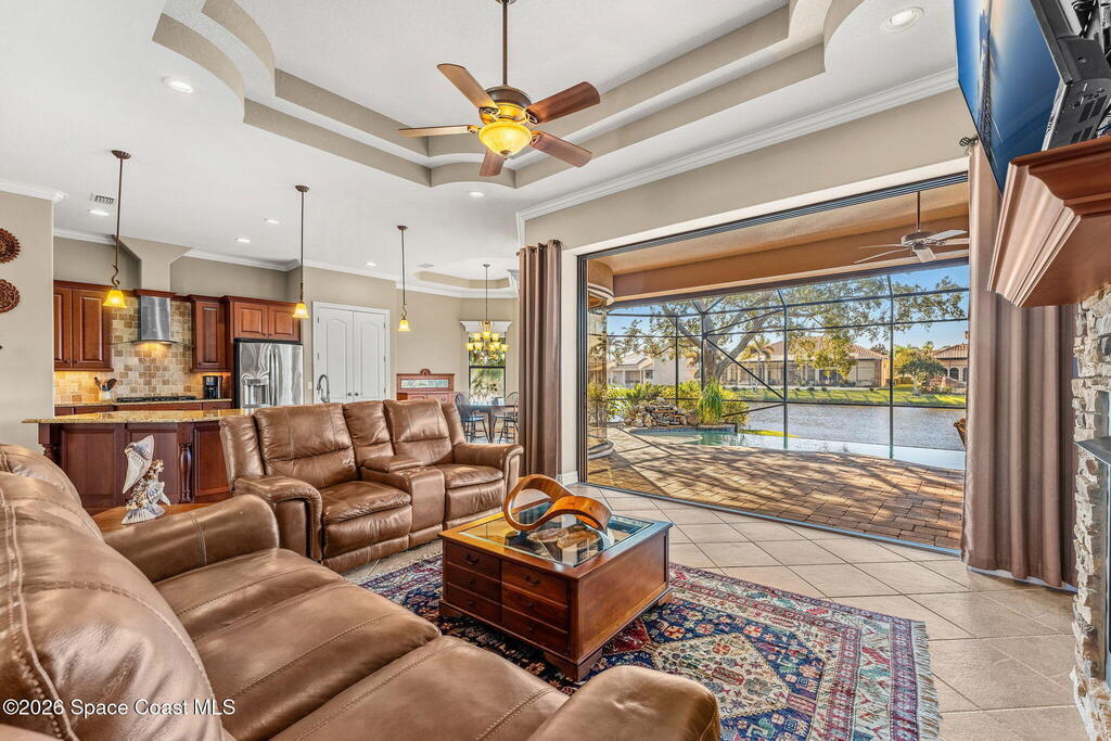 Experience Refined Waterfront Living in this Custom-Built Executive Pool Home, tucked inside the Gated Community of Casa Bella. This beautifully maintained residence offers the ''WOW'' factor! Open-concept layout w/ 3BR + office, 3 full baths & an oversized 3-car garage. Thoughtful details shine throughout, including triple pocket sliders, tray ceilings, crown molding & a chef's kitchen w/ an expansive island, granite counters, SS appliances- including a wall oven/microwave & gas cooktop. The stacked stone fireplace anchors the living room, while an expansive window wall & pocket sliding doors frame breathtaking water views. Step outside to a solar-heated infinity-edge pool & spa w/ waterfall overlooking the water. The primary suite features a spa-inspired en-suite w/ a walk-in shower for two & a pre-plumbed space for a soaking tub. Ideally located just minutes from shopping, dining, I-95 & the beaches, this exceptional home blends luxury & convenience in one stunning setting!