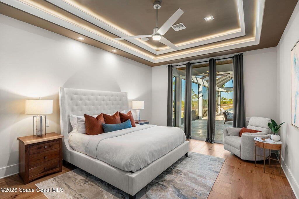 This custom-built lakefront estate delivers a rare balance of architectural confidence & resort-caliber living, where hardwood floors, soaring ceilings & expansive glass create a seamless dialogue between refined interiors & the water beyond. Designed for both grand entertaining & quiet retreat, the home unfolds through curated living spaces, a statement kitchen w/ concealed prep areas & a private primary wing featuring dual spa-inspired en-suites & his & hers boutique-level custom closets. Outside, a fully screened resort environment takes center stage w/ a heated saltwater pool, raised spa, fire features, sun shelf, outdoor kitchen & multiple covered lounge zones that transform every hour of the day into an experience. A separate guest casita, expansive garage spaces including an air-conditioned RV garage, whole-house generator & new RO system reinforce the home's thoughtful engineering, all set within the exclusive gated Adelaide that offers privacy, prestige & effortless access.