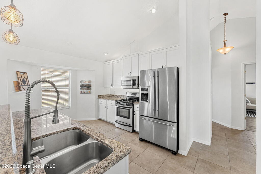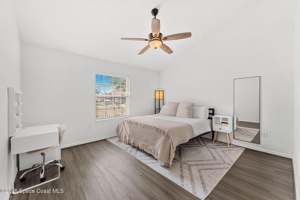 East Viera's coveted Six Mile Creek! This home sits on a sprawling corner lot shaded by mature trees, offering the charm of an established neighborhood paired w/ the feel of a home that's been thoughtfully refreshed w/ updates throughout. Major upgrades bring peace of mind, including a 2019 roof, 2020 gutters & storm protection w/ hurricane shutters, + a 2021 3-ton, 16 SEER A/C, & 2024 insulation throughout attic AND over garage! Inside, a bright split floorplan showcases vaulted ceilings, LVP flooring, tile, 2025 updated bathrooms & an updated kitchen w/ granite counters, breakfast bar, & a gas range that opens into a spacious dining area filled w/ natural light. The screened back porch offers tranquil water views, while the 2-car garage adds everyday comfort w/ an electric furnace & gas water heater. Complete w/ an irrigation system with new 2026 pump! , top-rated schools, & an unbeatable central location near parks, pedestrian trails, shopping, dining, & everything Viera offers!