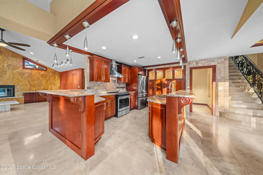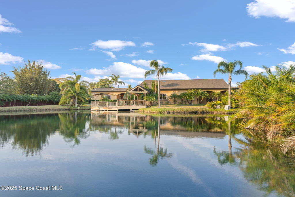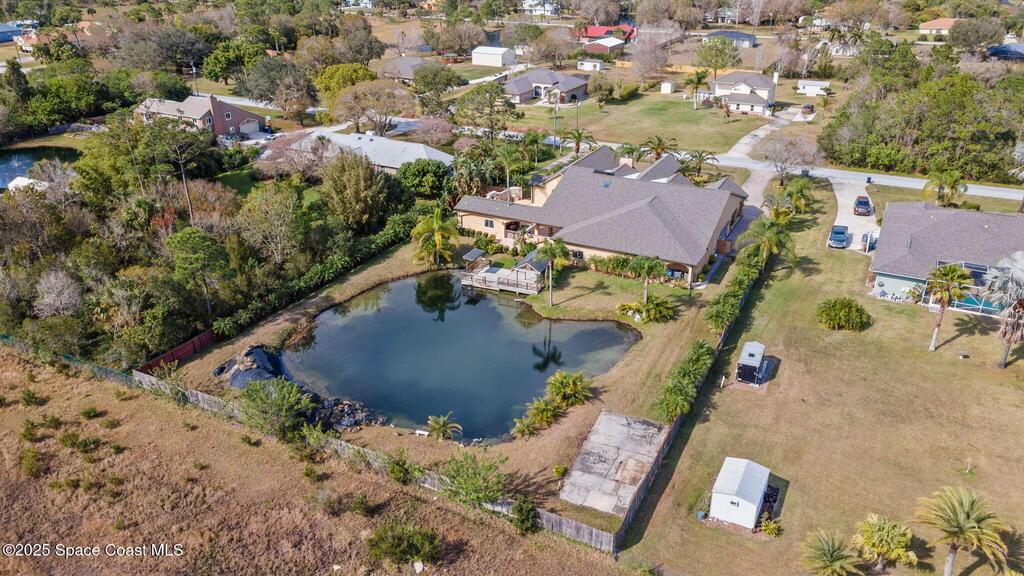 A rare opportunity to own a stunning Mediterranean-inspired estate offering over 6, 000 square feet of refined living with 6 bedrooms and 6.5 baths. Architectural features include a grand marble staircase, soaring ceilings, an indoor waterfall, rich stone accents, and multiple entertainment areas. Designed for everyday comfort and entertaining, this home features expansive open living areas, private wings, and a home theater- with all equipment included. A separate 1/1 in-law suite, complete with a kitchenette and an oversized shower featuring multiple shower heads is ideal for guests, extended family, or a private living space. The backyard is a retreat with a large pool, outdoor kitchen, pool bath, and a serene pond with a dock and built-in seating, perfect for enjoying peaceful sunsets. Situated in a quiet no-HOA neighborhood, just minutes from I-95, the new Publix, and a growing selection of shopping and dining, this property delivers luxury, privacy, and convenience all in one!